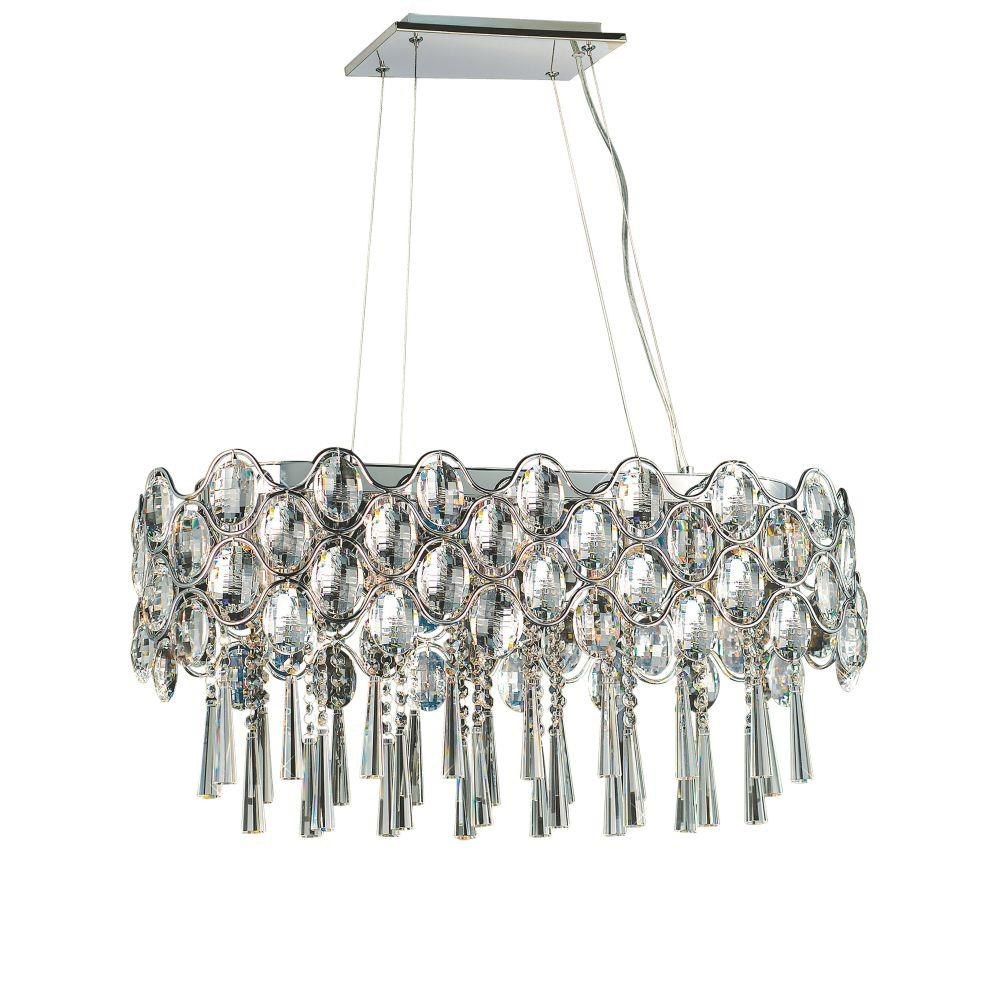Definitely not your grandmother's crystal, the Jewel Collection transforms an elegant gem into a bold design formed of bent steel, undulating patterns, and a Polished Chrome finish. The substantial Beveled Crystals sparkle like jewel pendants, while the internal crystal beads delicately reflect the light from the xenon lamps.