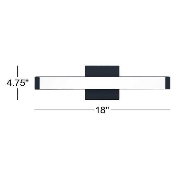 Sleek and clean, this dimmable LED bath bar adds a soft, warm glow to your space while still keeping your minimalist style in mind. It's made from metal in the finish of your choice and is mounted on a small square backplate. The rectangular white plastic shade houses an integrated 20W LED light, which offers a more energy-efficient design that can last up to 50,000 hours. Best of all, this versatile fixture can be mounted either horizontally or vertically, is compatible with dimmer switches, and is safe to use in locations with direct water exposure.