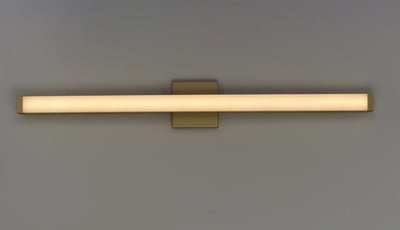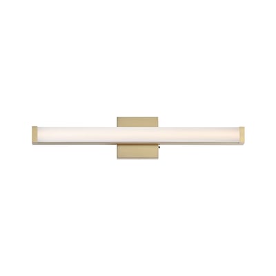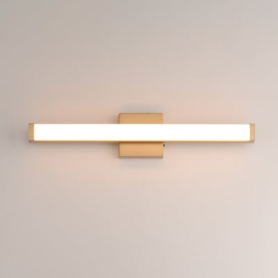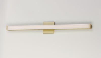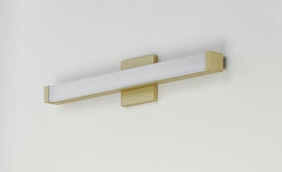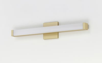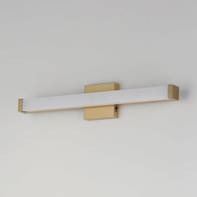 Maxim Lighting Spec Bathroom Vanity Light with a sleek design, featuring a gold finish and aluminum construction, elegantly illuminates the space.