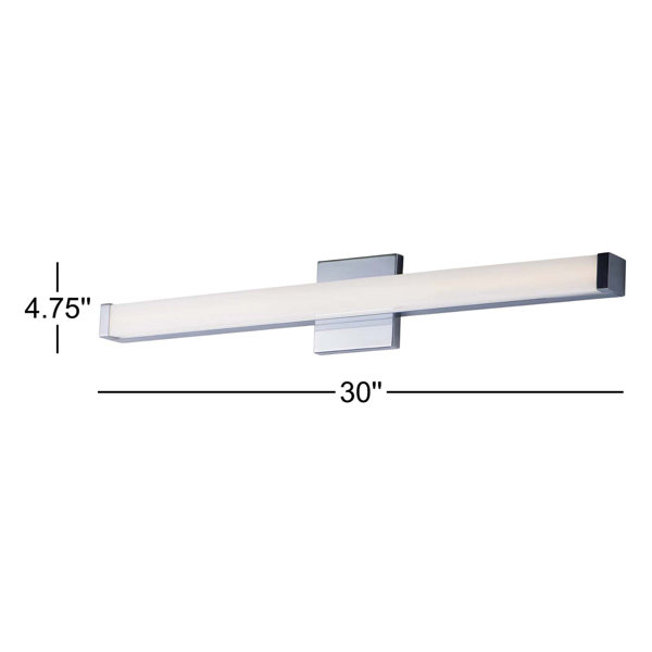 This sleek 1-light bath bar draws on a scaled-back design that grounds your main bathroom or guest bath with a minimal look. It's crafted with a metal mount, andit features a white acrylic shade with a rectangle design that both evenly diffuses light and creates a modern silhouette. An integrated LED light keeps this piece bright, and it works with a dimmer switch to effortlessly take you from morning to night. At 30'' wide, this bath bar is suited to fit just about any bathroom size. Plus, it has a reversible design that aims to light up or down depending on your preferences.