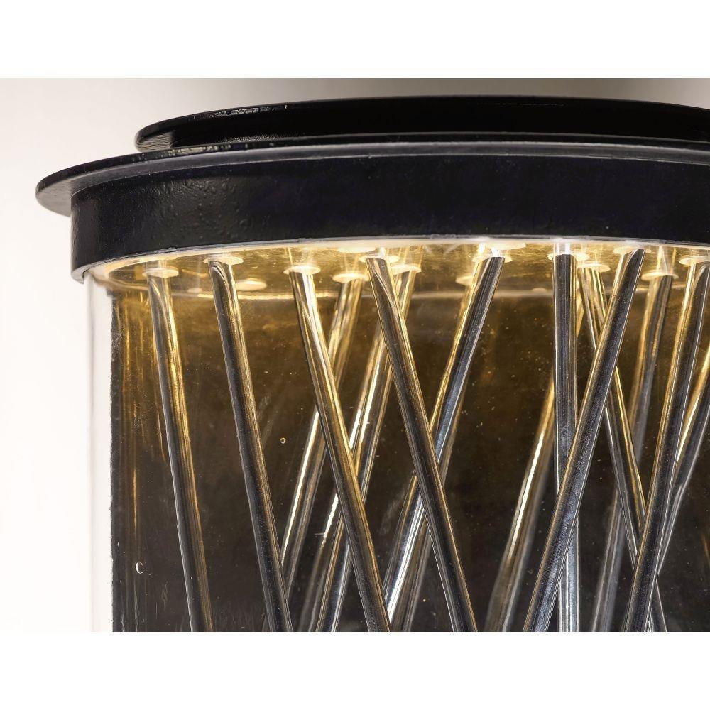 Polished rods are arranged in a creative pattern to create a unique lighting design. This oval shape fixture is available in two finish combinations, Textured Ebony with Polished Chrome rods and Galaxy Bronze with French Gold rods. The rods are supported using clear acrylic which allows for the LED light source to illuminate through the fixture and out the open bottom for excellent down light.