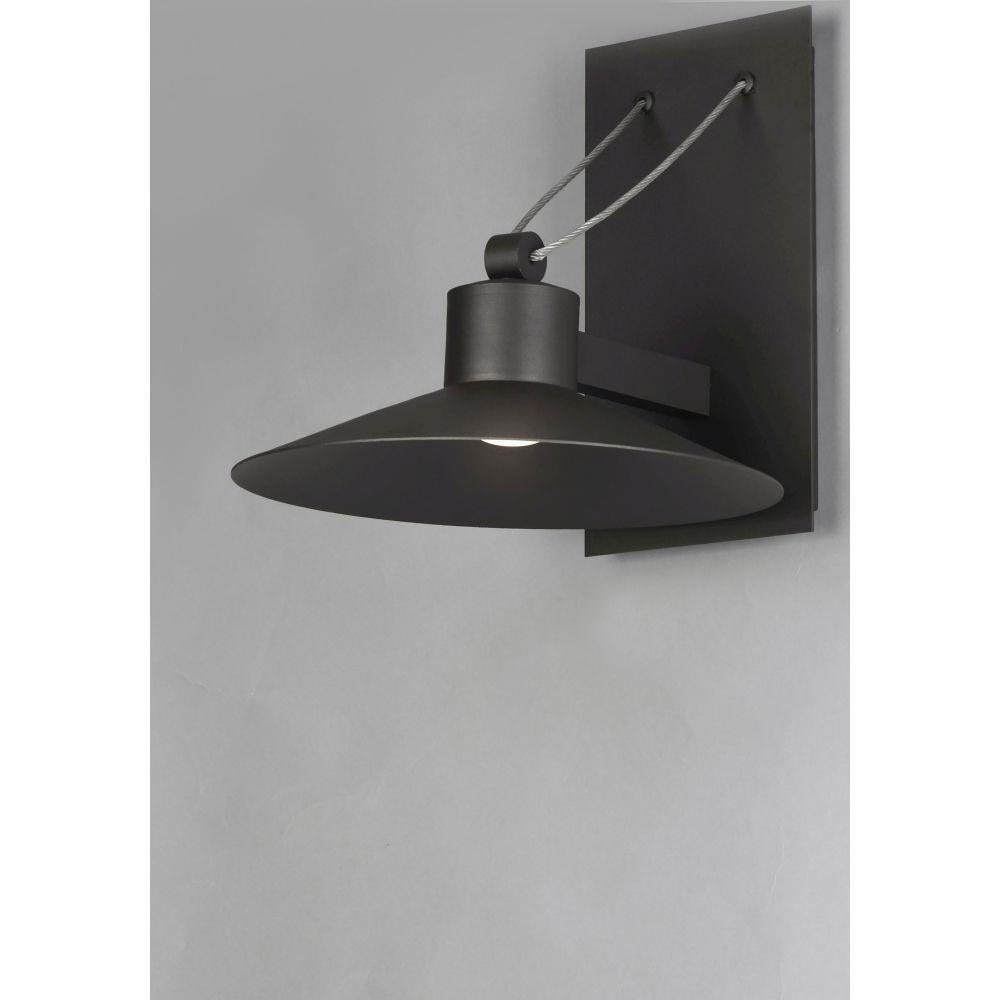 Conical shades finished in Architectural Bronze appear to be suspended by its stainless steel cable. Concealed inside these shades is a high powered COB LED which shines into a heavy Clear glass font. The bottom of theses fonts have an additional thickness of glass for better light distribution and lighting effect.