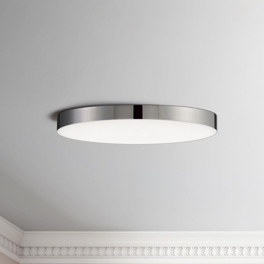 Thin discs of evenly illuminated LED create the impression of recessed lighting. The die-cast aluminum housings are available in White, Black, Satin Nickel, and Polished Chrome all with a thoughtfully recessed White polycarbonate diffuser. High efficiency and good color rendering make this a perfect choice for your next project. Use the optional pendant adapter to convert any size to a hanging fixture.