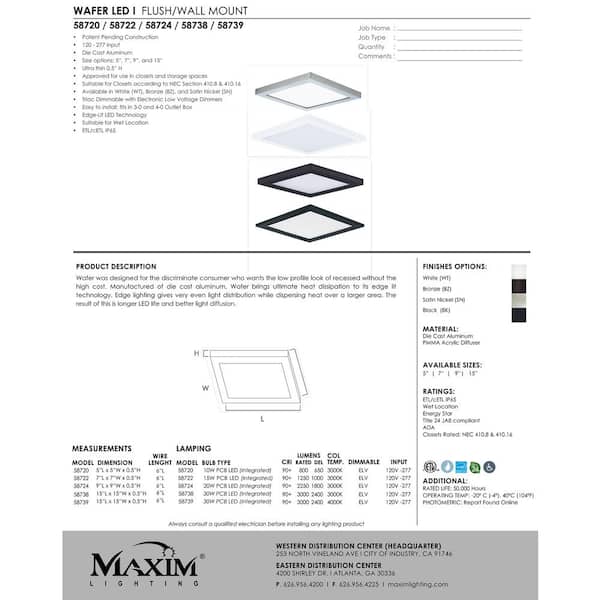 Wafer 9 in. SQ Integrated LED Surface Flush Mount 3000K