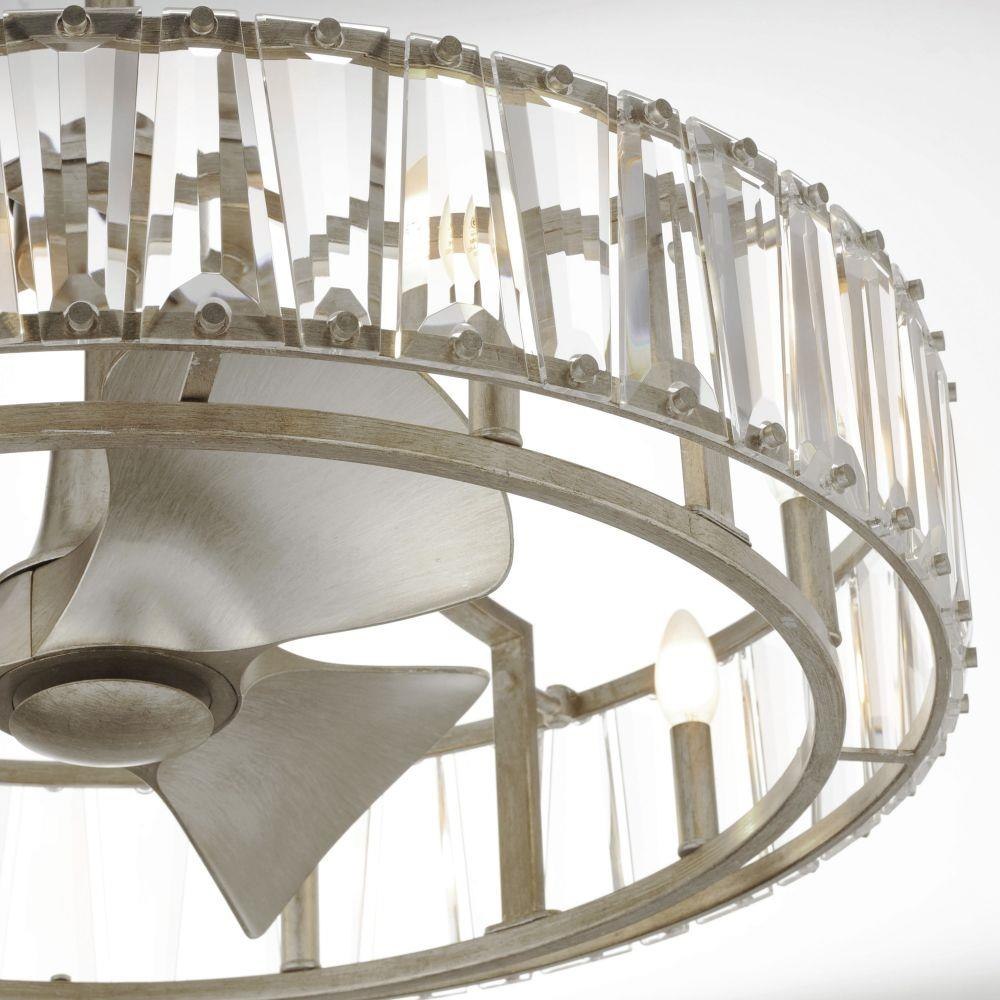 Boldly beveled tapered glass panels are arranged around a metal frame finished in either Chestnut Bronze or elegant Golden Silver. Evocative of an earlier era, the glitz and glamor of the Odeon collection integrates Wifi-enabled functions to dim the LED bulbs provided and operate the fan controls. Transform your fan with a dazzling Smart Fan-delight.