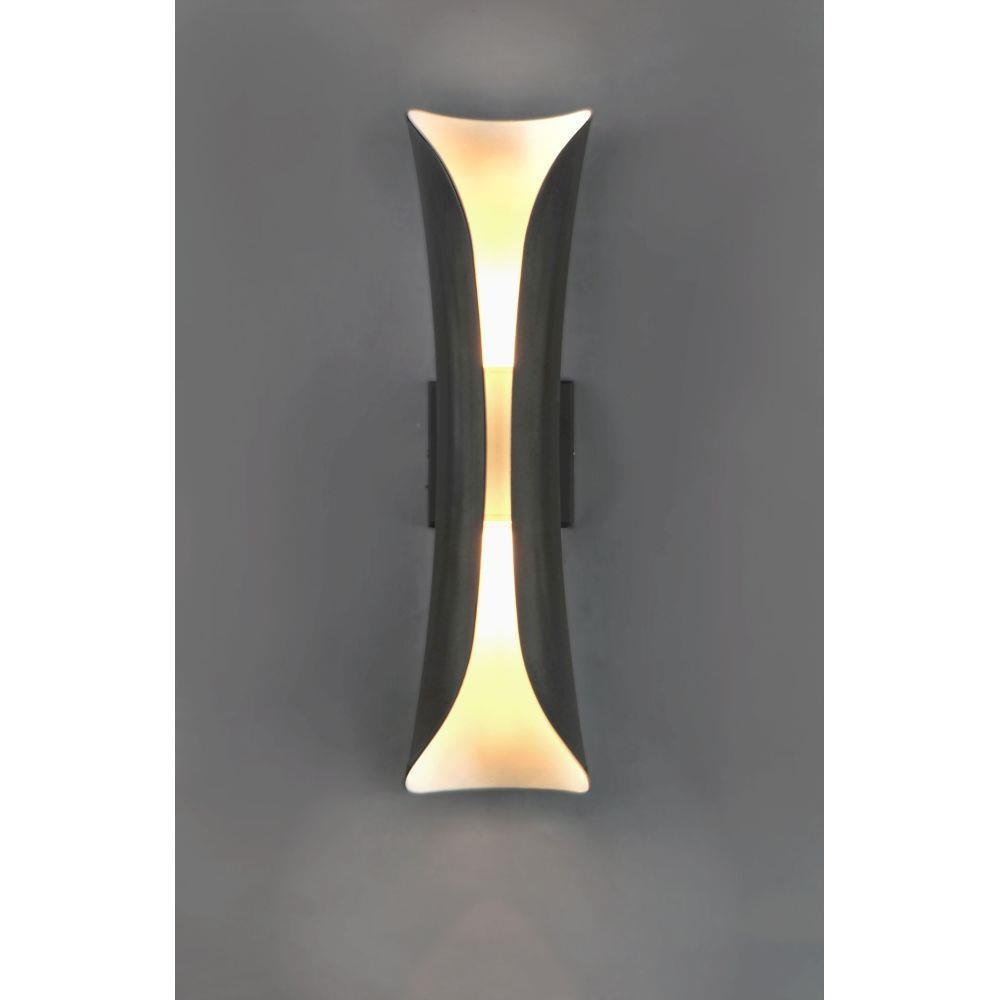 Softly rolled aluminum does not quite meet at the center, leaving an opening to allow light to escape from its top and bottom, visible all along its center. The scroll series comes in our Architectural Bonze finish with a white interior to better reflect light and create an interesting light pattern on the wall. Suitable for both indoor and outdoor applications.