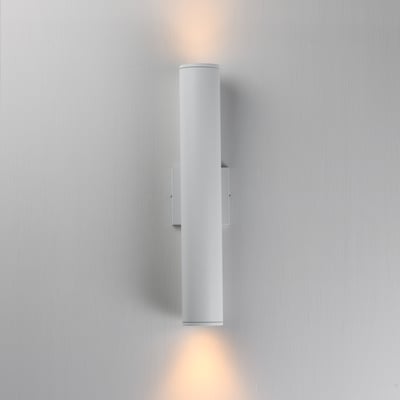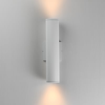 The Caldera Outdoor Wall Sconce enhances outdoor spaces with its sleek design and efficient lighting. Featuring a recessed optical lens, it delivers a luminous light source while minimizing glare, making it an ideal choice for modern exteriors.