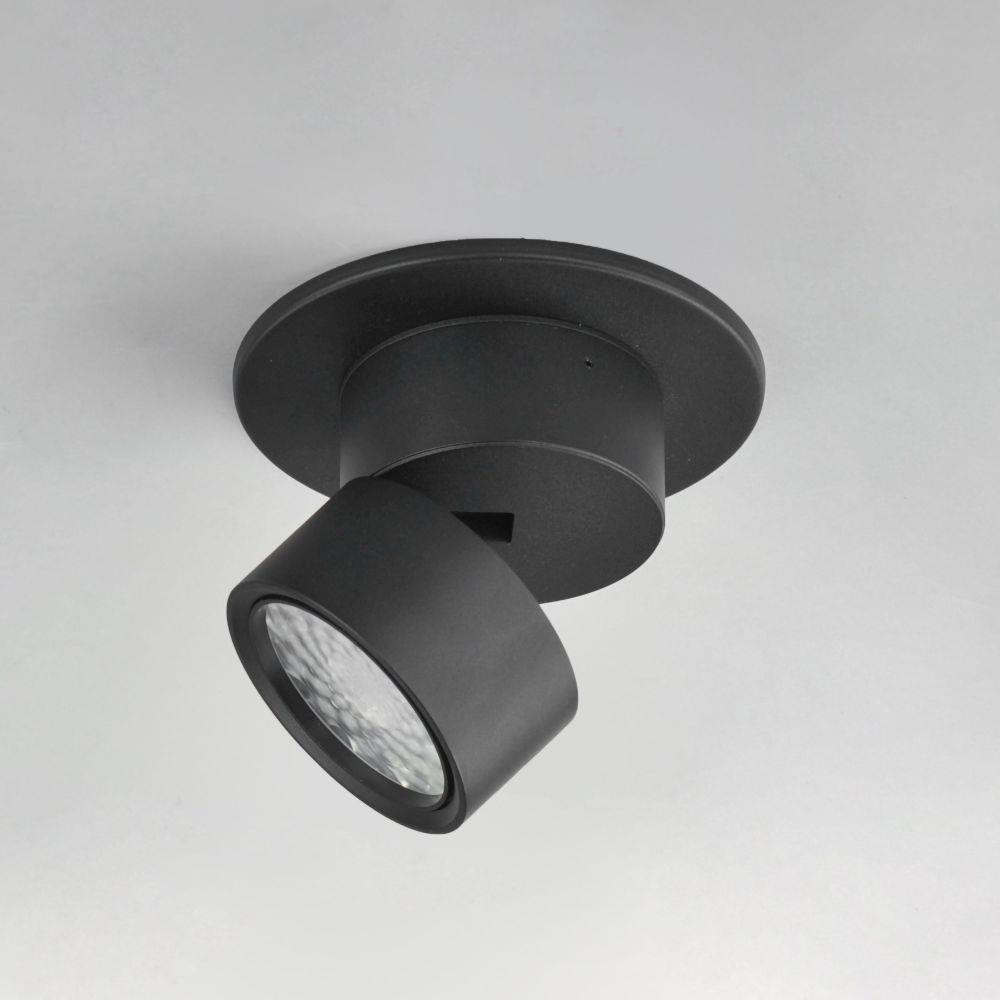 Inconspicuously recessed within its cylindrical house, an extending arm transforms this surface mounted light fixture into an adjustable spotlight. Simply unthread the top half along the seam to extend the frame length and swing the fixture into position. Twist the lens on the face of this fixture to adjust its beam angle spread. Available in Black and White and two apertures that include a mud-in ring for an even cleaner installation.