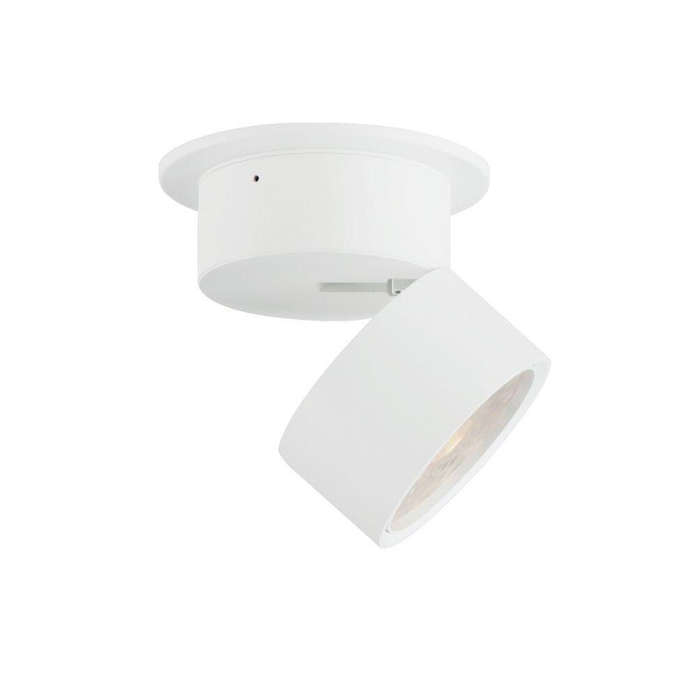 Inconspicuously recessed within its cylindrical house, an extending arm transforms this surface mounted light fixture into an adjustable spotlight. Simply unthread the top half along the seam to extend the frame length and swing the fixture into position. Twist the lens on the face of this fixture to adjust its beam angle spread. Available in Black and White and two apertures that include a mud-in ring for an even cleaner installation.
