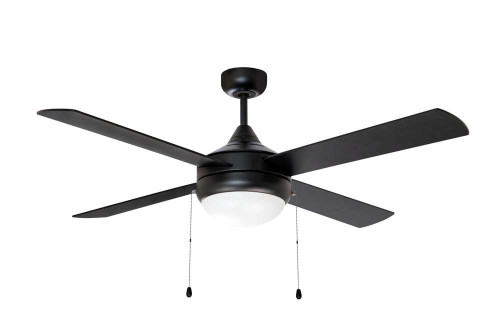 Featuring four straight fan blades in black on one side and silver on the other, as well as a black and matte white variant, the Quattro fan offers a modern yet transitional style at affordable prices. LED JA8 compatible lamps and a pull chain are supplied to power the fixture.
