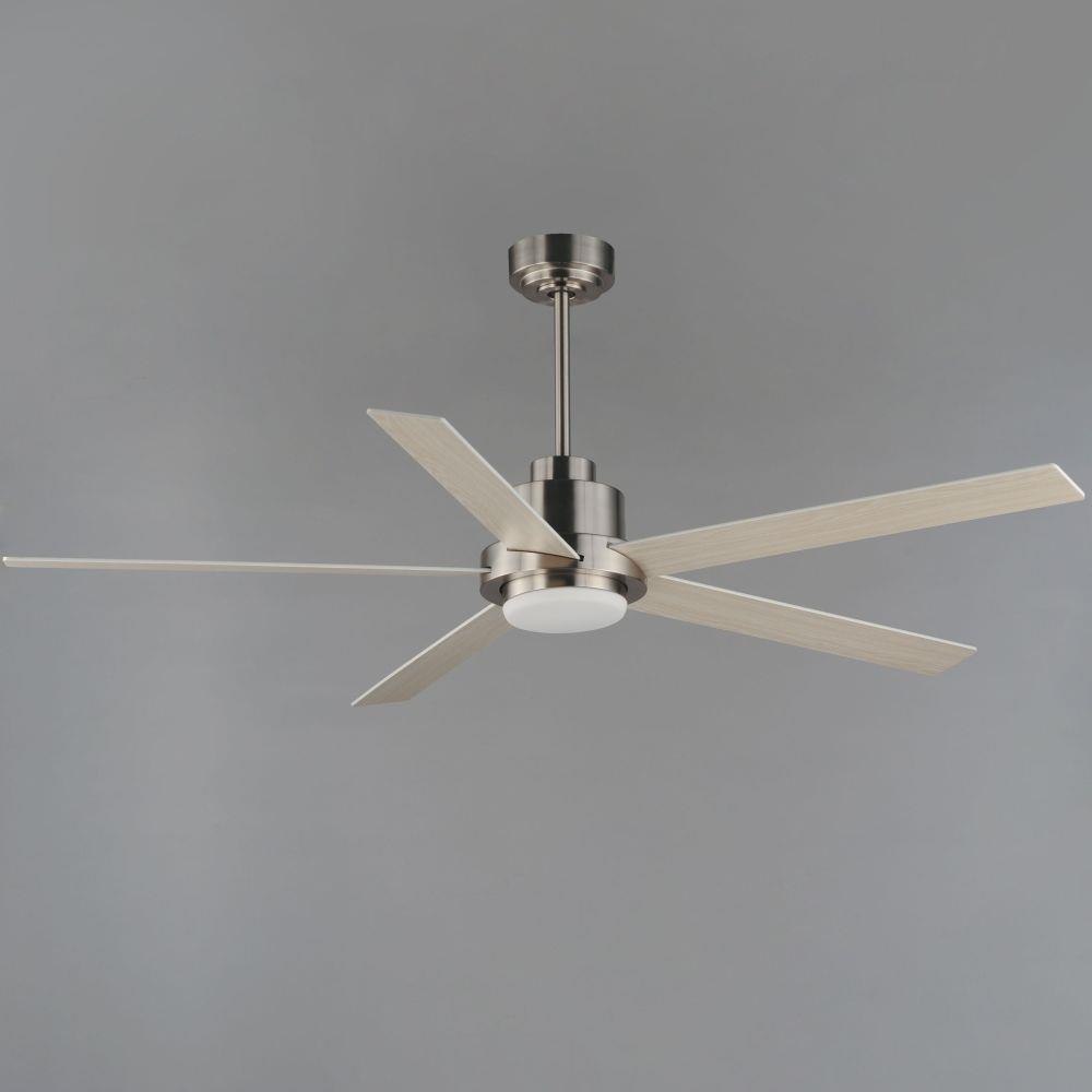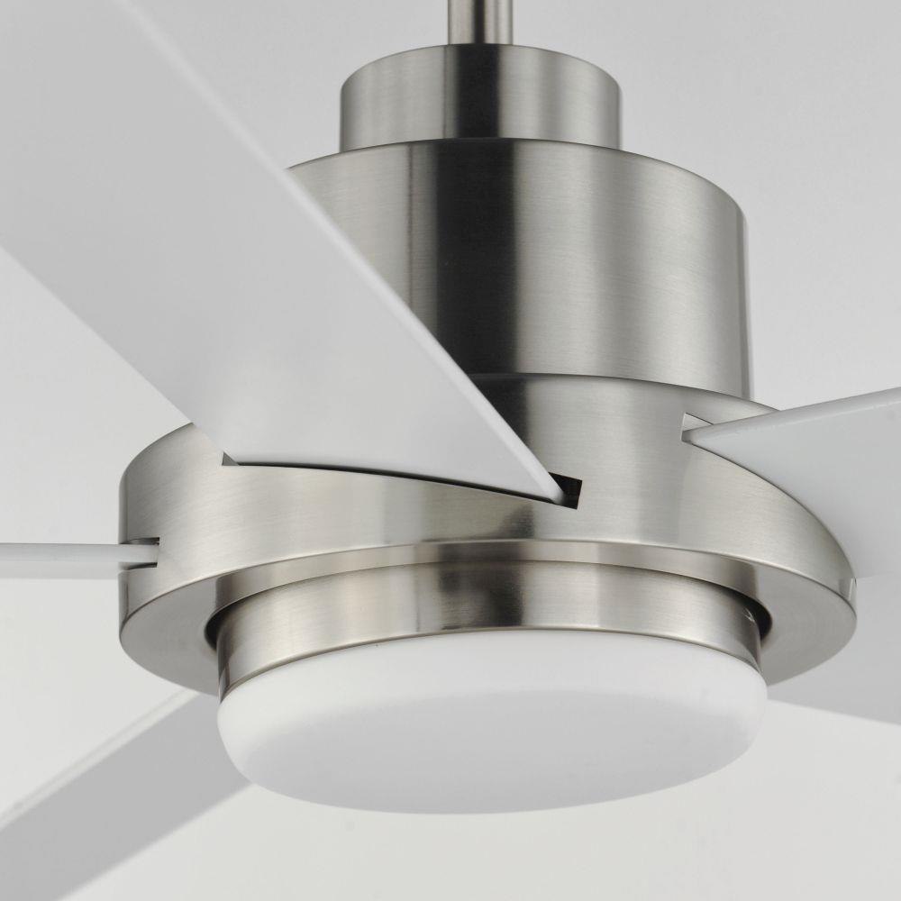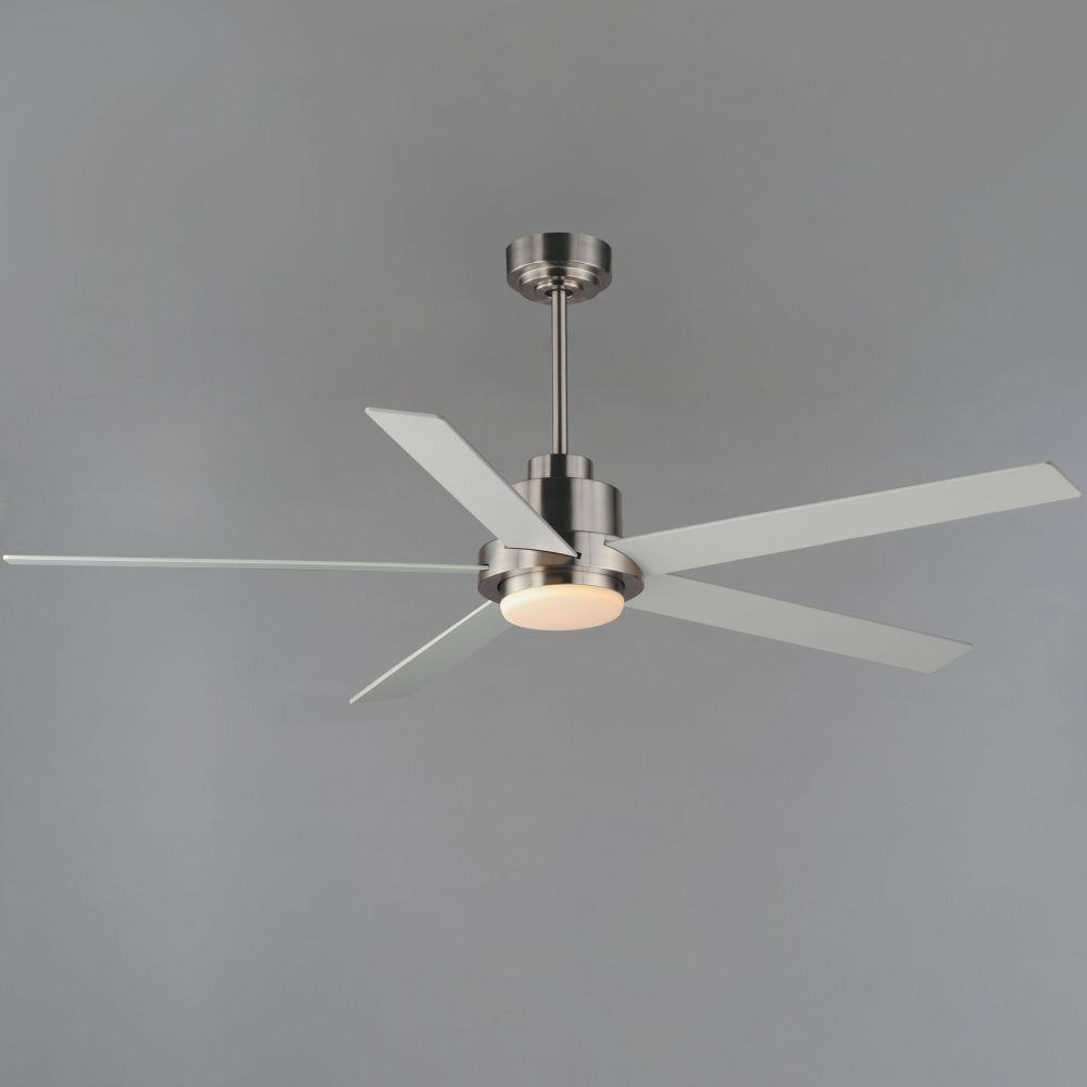 For larger spaces, a larger blade span is sometimes required. This minimalist design is pure and simple. Elongated ABS blades span 60 inches and finished in Matte White contrasting the motor housing's Natural Aged Brass finish. The two tone finish makes for a stylish and bright fan great for interior spaces. Wall control with dual slide dimmer and fan speed control is provided.