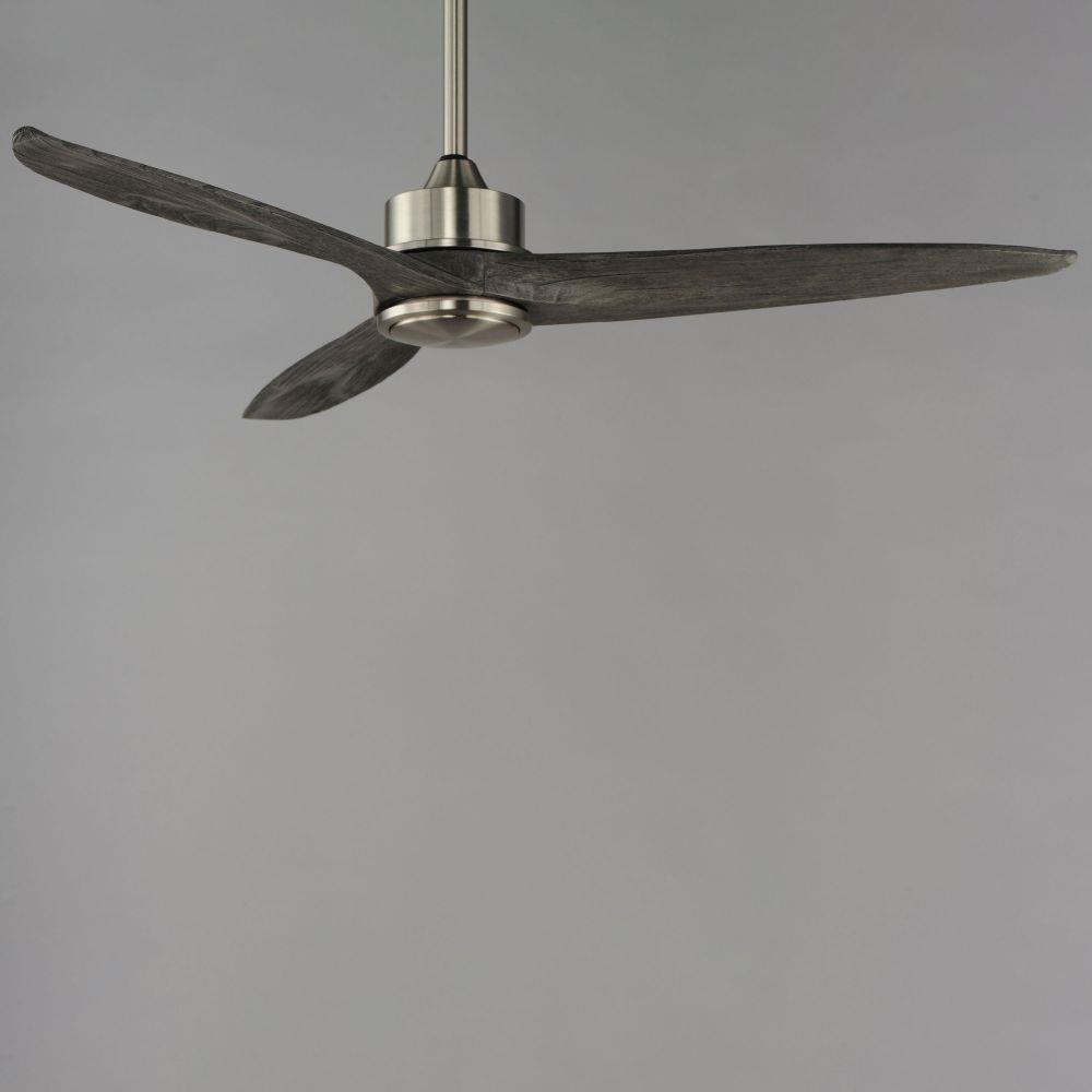 Solid Wood blades curve as they rotate around a center housing with LED light kit included. An additional cover plate is included if the light kit is not used. Select from stylish finish combinations including Natural Aged Brass with White Wood, Satin Nickel with Greywood, Black with Walnut wood, or Charcoal Bronze with Distressed Wood.