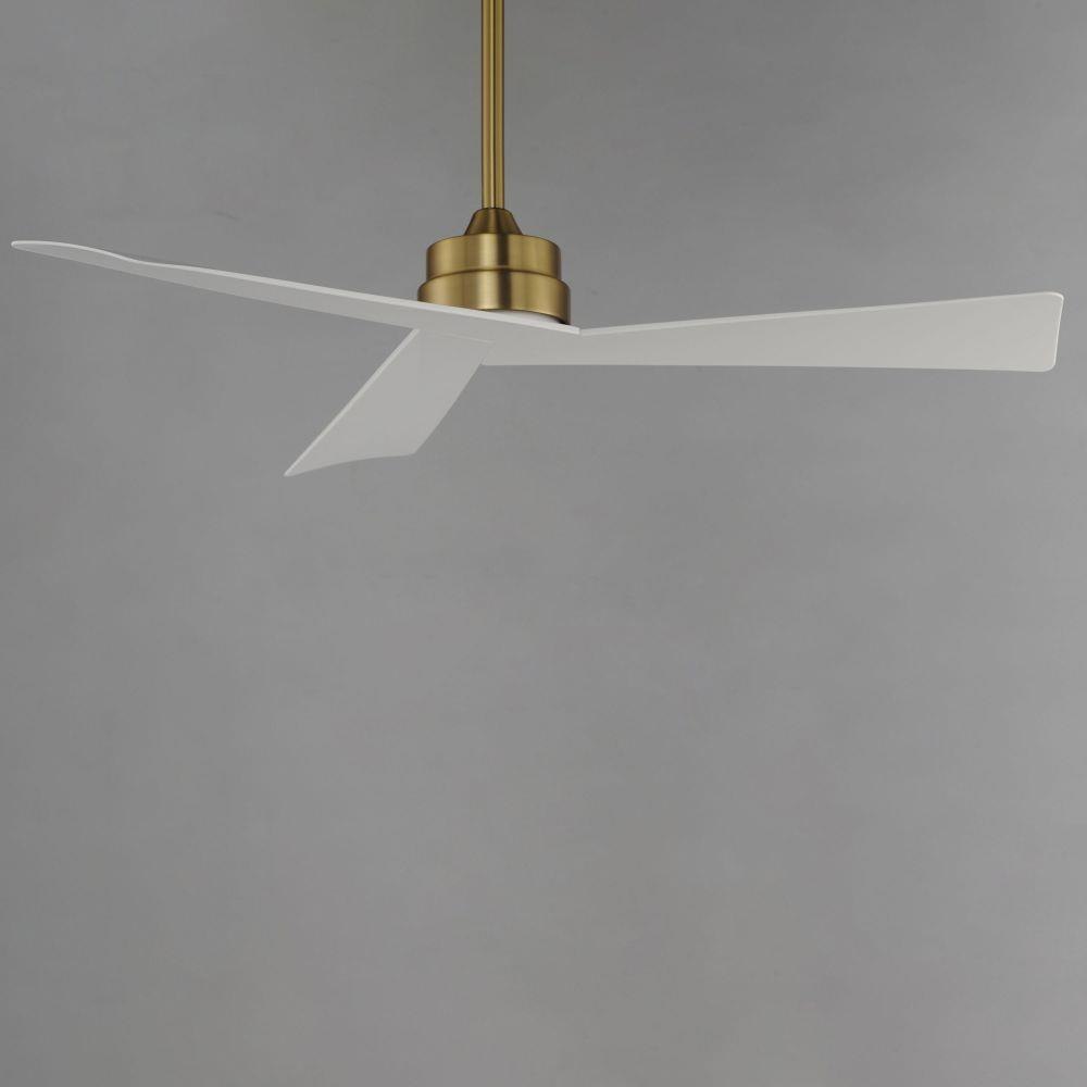 Sharp angular blades come together at the center housing of this fan for a modern, yet transitional look. Available in finishes that match most interior spaces, select from Matte Black, Satin Nickel with Greywood, Natural Aged Brass with White Blades and Charcoal with Driftwood Blades. With a DC motor and magnetic wall mounted remote that is included, this fan is sure to be a stylish addition to your space.