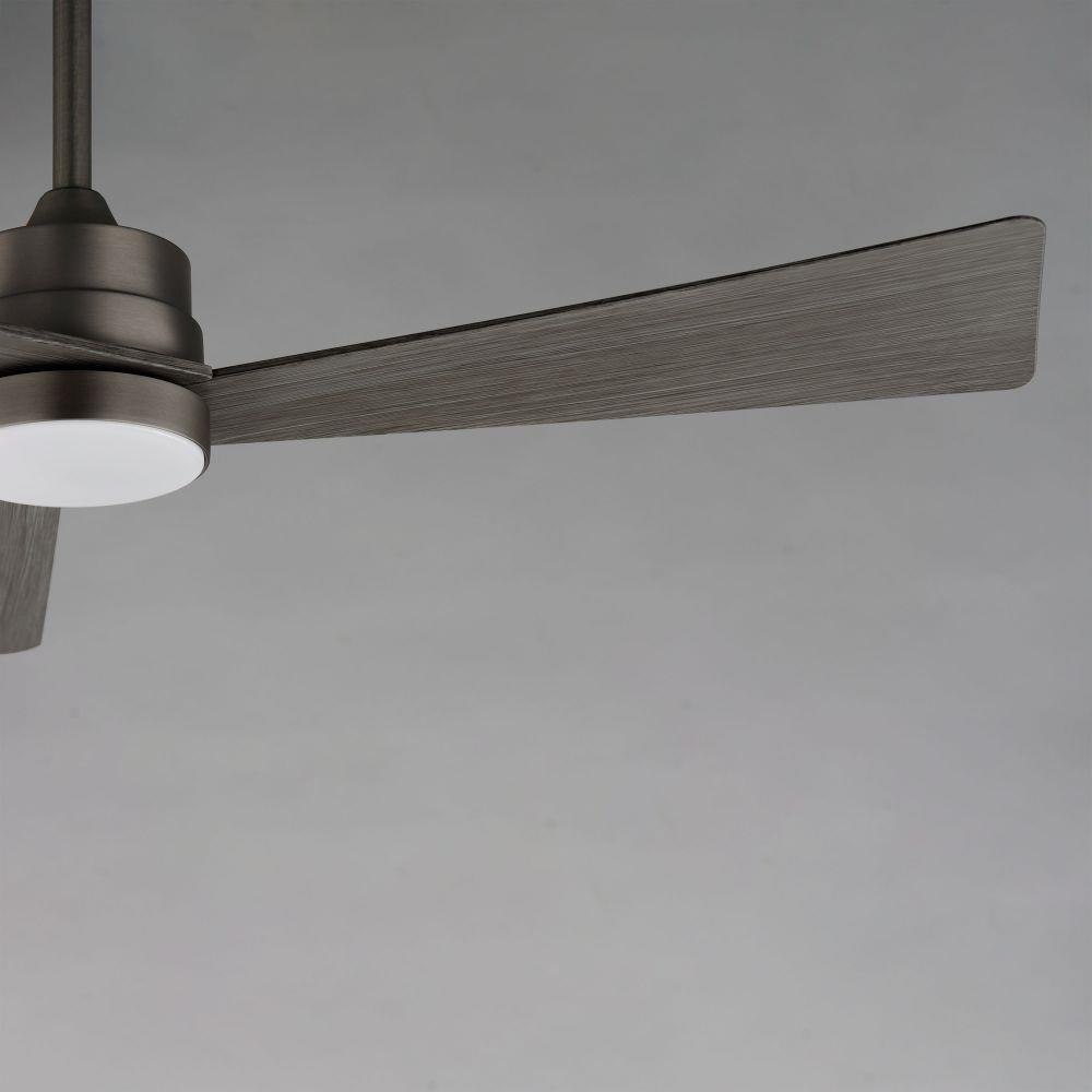 Sharp angular blades come together at the center housing of this fan for a modern, yet transitional look. Available in finishes that match most interior spaces, select from Matte Black, Satin Nickel with Greywood, Natural Aged Brass with White Blades and Charcoal with Driftwood Blades. With a DC motor and magnetic wall mounted remote that is included, this fan is sure to be a stylish addition to your space.