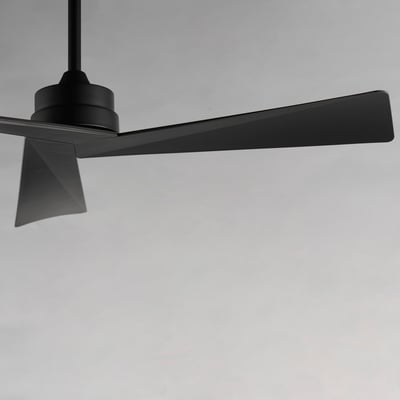The Vortex Outdoor Ceiling Fan combines modern design with functional performance, making it an ideal addition to any outdoor space. Its sharp angular blades converge at a sleek center housing, creating a striking visual appeal.