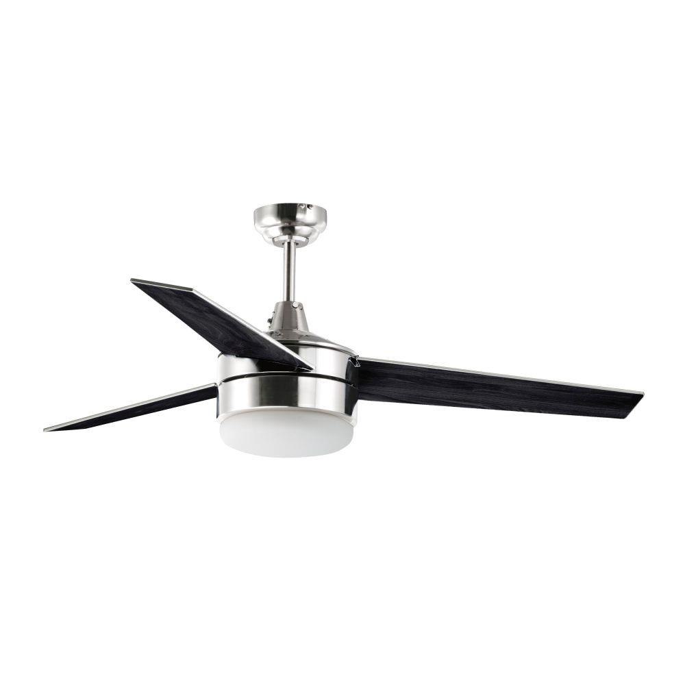 A contemporary, yet transitional look at economical pricing, the Trio fan is finished in Satin Nickel with 3 straight fan blades in Black on one side and silver on the other side. The fan is powered by a wall control included as well as LED JA8 compliant bulbs also included.