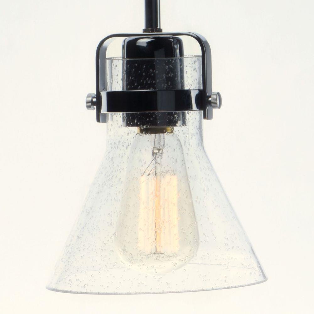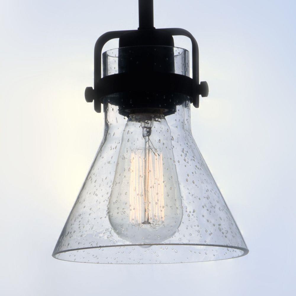 This nautical-inspired collection features Clear Seedy glass cones suspended by a yoke frame. The clear glass offers abundant lighting and compliments the styling of the fixture. Make it a more industrial look by adding filament E26 light bulbs.