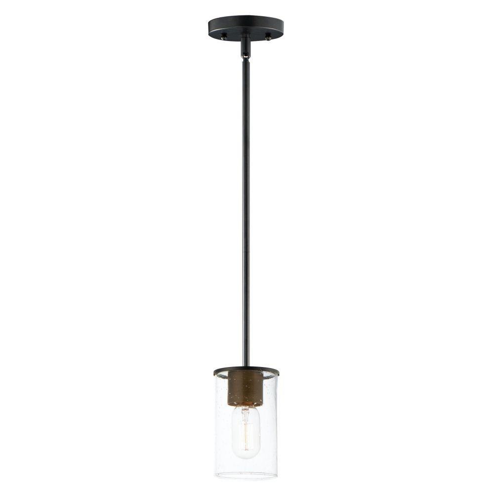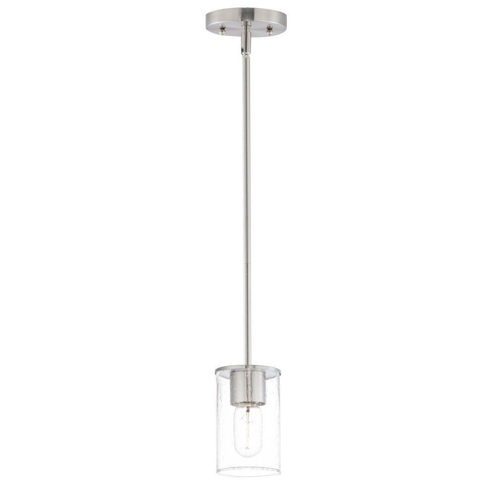 Cylinders in Clear Seeded glass on simple Satin Nickel frames or matte Black frames with Antiqued Brass socket covers. Pivoting arms on chandelier allow it to direct light up or down. Use filament lamps either tubular or Edison in shape for a Coastal or Industrial look, or use a traditional A19 to create a more transitional look. A full range of affordable lighting for the kitchen, dining room, bathroom, or bedroom that easily complements fashionable finishes and lasting styles.