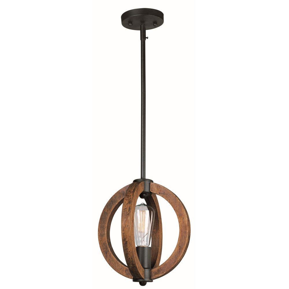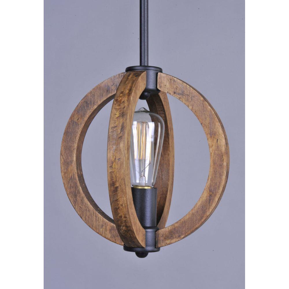 Rings of Ash wood are distressed and then finished In Antique Pecan for that old world feel. Metal accents finished in Anthracite provide a forged iron appearance that complements this rustic design.