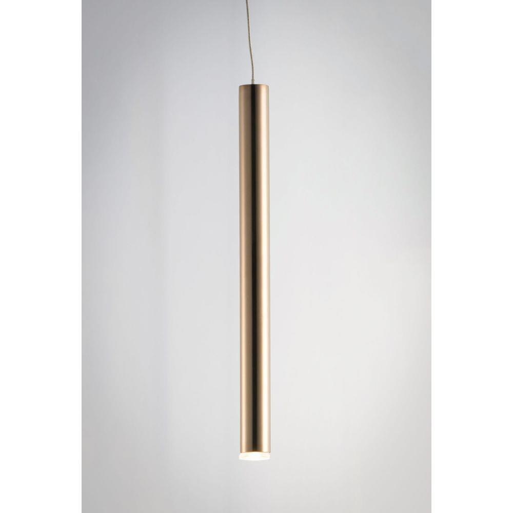 Elongated metal tubes in a variety of finishes from Rose Gold to Polished Chrome suspend from pans to create impressive sculptural statements. Each tube encase a replaceable integrated LED module while many of the ceiling pans house additional LED spots to highlight the beautiful high gloss finishes as well as additional down light.