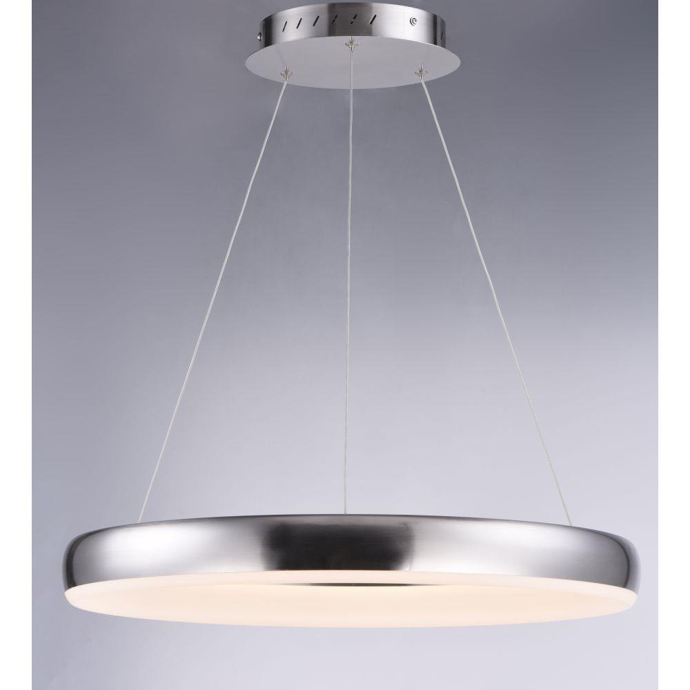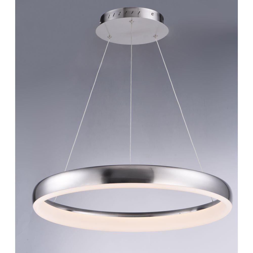 Doughnut shaped rings finished in a beautiful Satin Nickel create a soft contemporary design. LEDs are mounted at an angle to evenly illuminate the entire diffuser a soft diffused light.