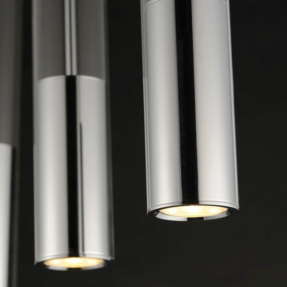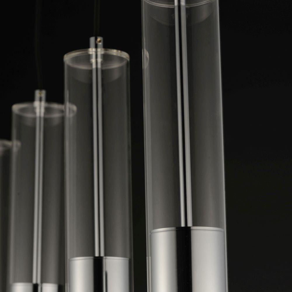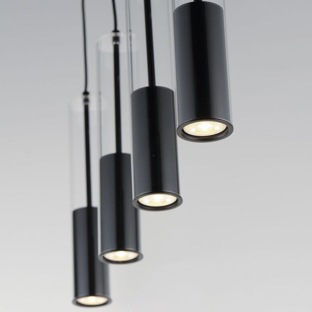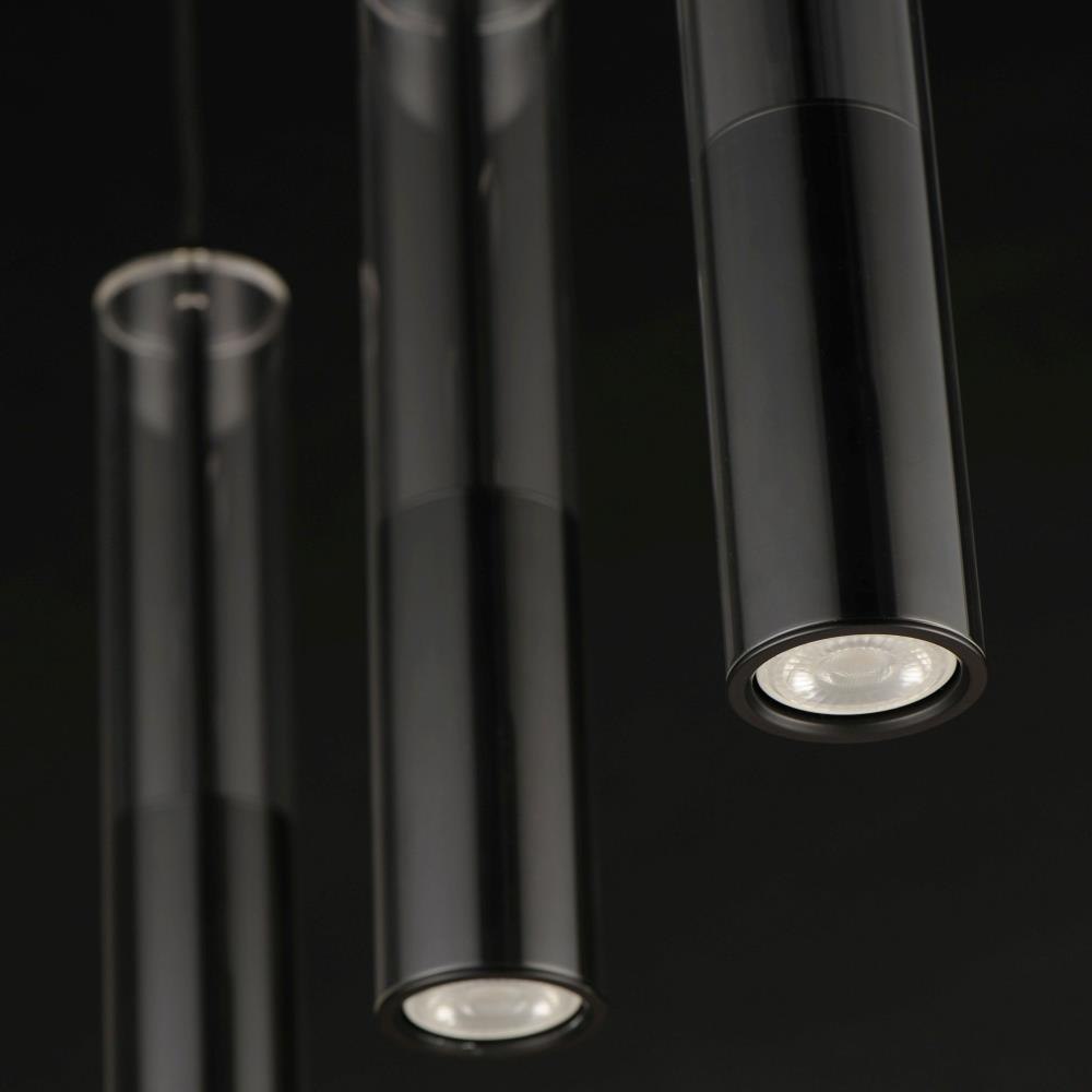 Machined Aluminum tubes of Black, Polished Chrome, or Brass suspend within clear glass overlays. An LED GU10 bulb is recessed within the metal tube providing great directional lighting. Available as a single pendant or as a 4-Light linear pendant and compatible with the 120V canopy kits sold separately.