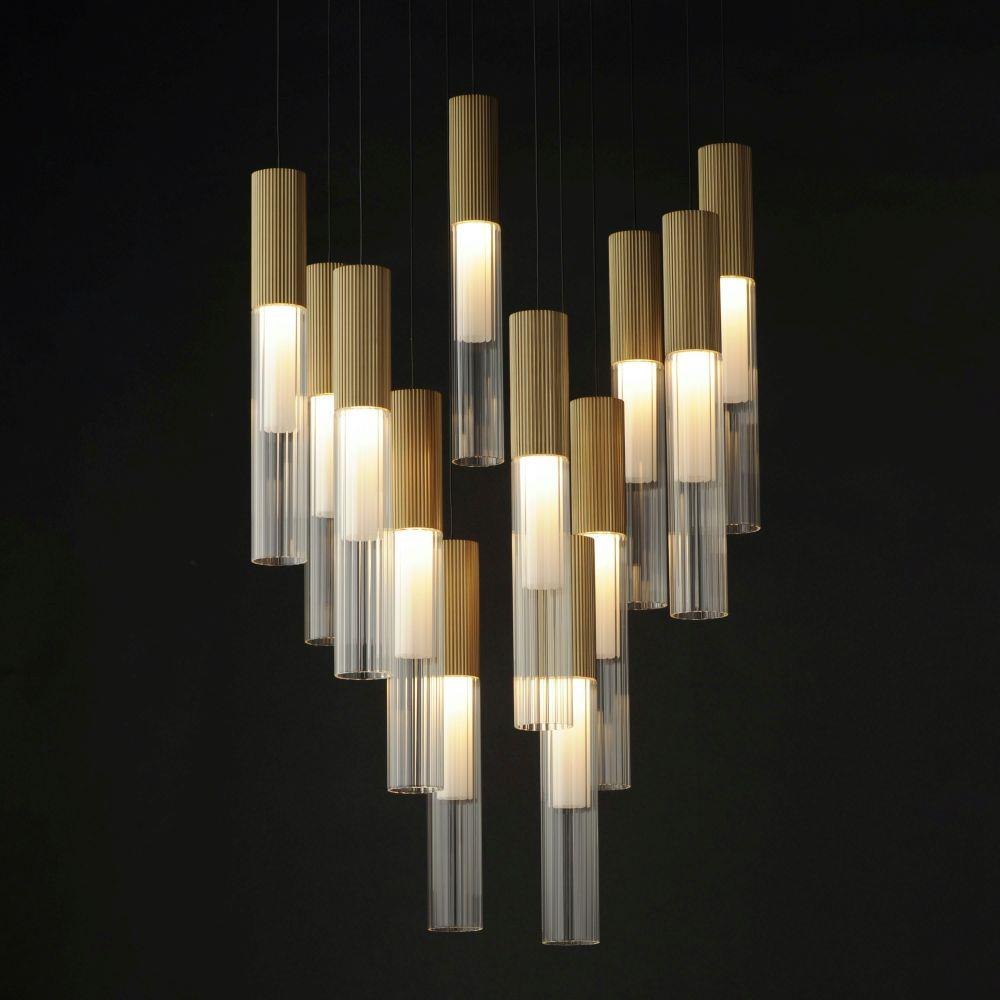 Reeded glass tubes are paired with ribbed aluminum LED housings in your choice of Gold or Matte Black finishes. The interior frosted glass diffusers soften the high-powered LED boards concealed within. The low-voltage light sources are driven by a commercially rated range voltage LED drivers with universal dimming, allowing them to be used in both residential and decorative commercial or hospitality applications. ADA compliant sconces are a welcome companion to the series as well as the fully metal stem hung pendant option designed without glass and uses a JA8 Listed LED GU10 lamp instead of dedicated LED.
