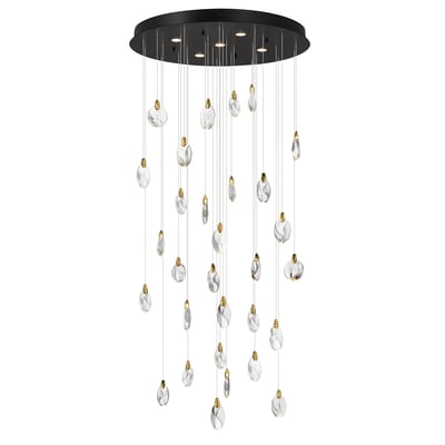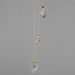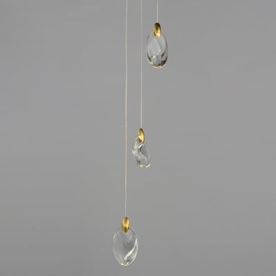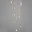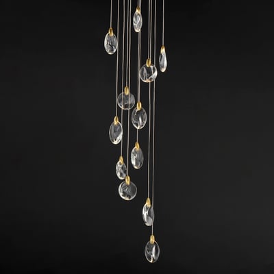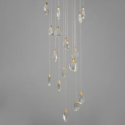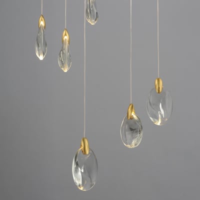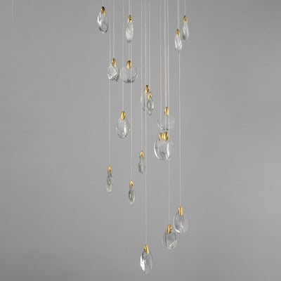 The Pebble Multi-Light Pendant by ET2 elevates any space with its organic design, inspired by the natural beauty of riverbed stones. This striking pendant showcases smooth, irregularly shaped crystal pebbles, beautifully illuminated by concealed LED sources, creating a captivating ambiance.