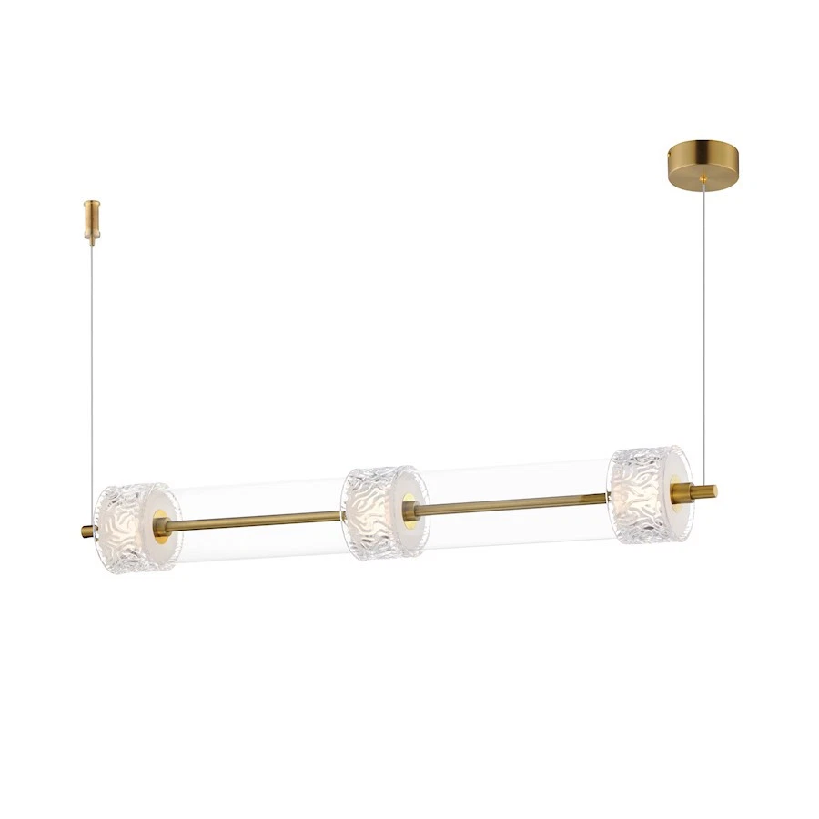 ET2 Lighting Elysian 3 Light LED Linear Pendant, Brass/Ripple - E11083-124NAB