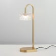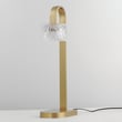 The Elysian Table Lamp enhances any space with its elegant design and innovative lighting. Featuring a blend of clear glass cylinders and rippled crystal accents on a natural aged brass frame, this lamp creates a luminous, airy atmosphere perfect for modern interiors.