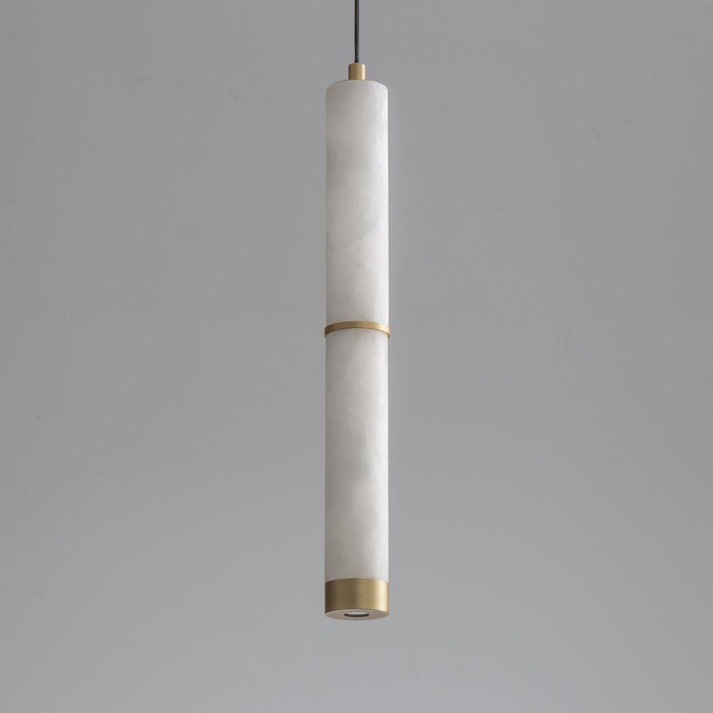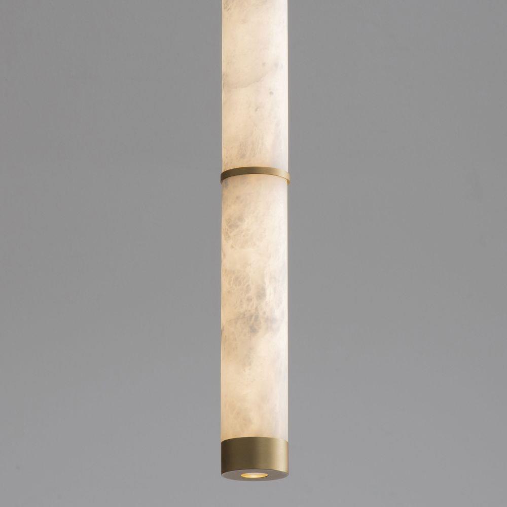 Featuring carved Spanish Alabaster shades in sleek cylindrical forms, the Aragon collection conceals high-powered LED light sources within, providing both beauty and functionality. The natural alabaster is elegantly complemented by plated Gold accents, adding an upscale, luxurious touch. Available as pendants or sconces, these fixtures are damp rated, making them ideal for interior spaces including bathrooms.