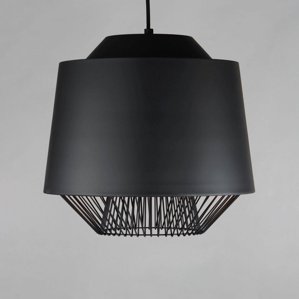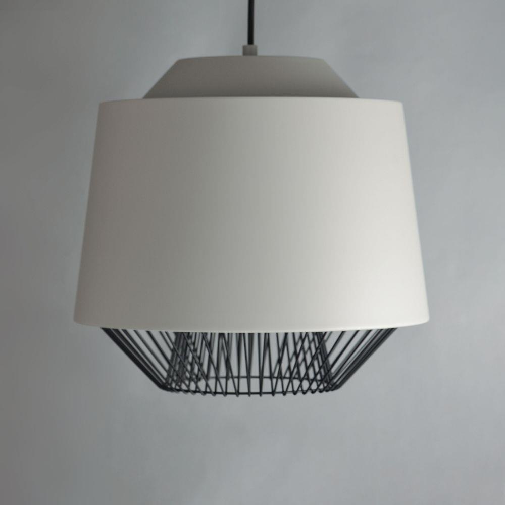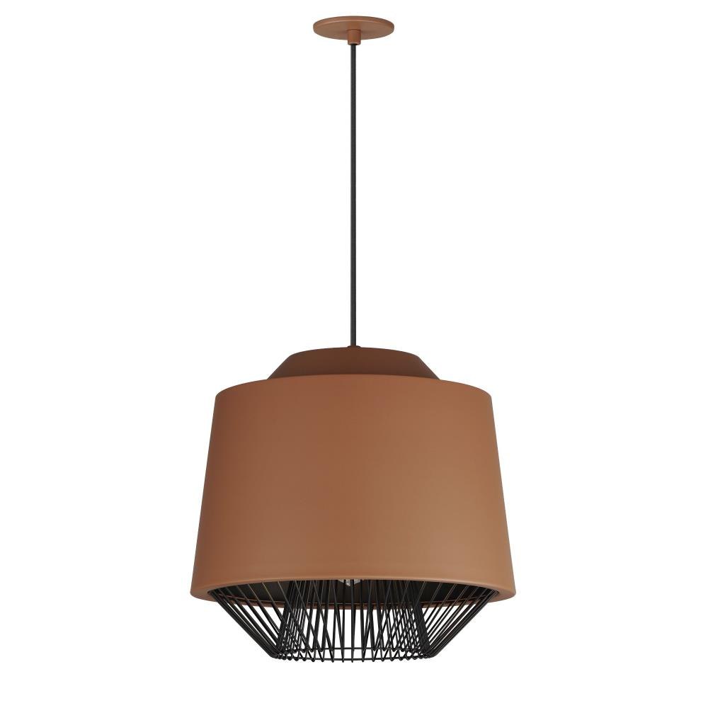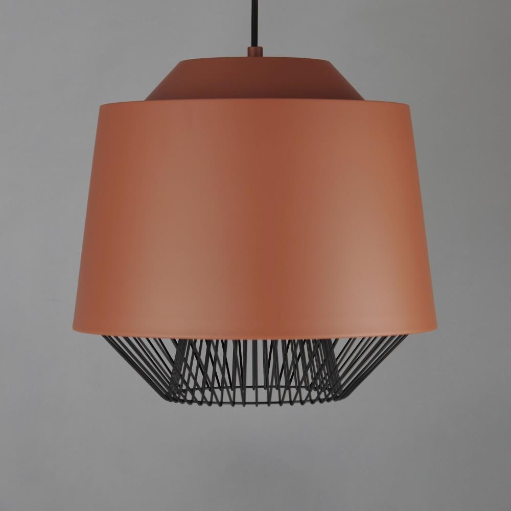 Both modern and industrial, the angular lines of these aluminum spun shades refresh a classic concept in a clean, contemporary execution. The shades - available in Brick, Black, and a Pale Gray powder coated finish, feature multiple joints and peaks in their form and at their bottom intentionally return inward. The shape at the bottom is not only attractive, but a cleverly conceived method to support a wire network of Black steel that forms a cage without visible hardware. Illuminated from within the spun metal shades in 3 varying sizes and shapes, the LED lamp provided shines light below and disperses through the wireway creating a beautiful radiating light pattern.