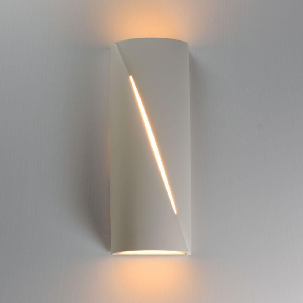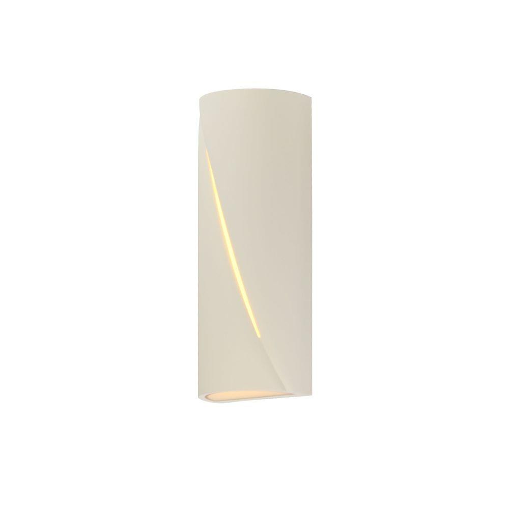 Softly rounding forms are constructed of outdoor-rated concrete molds. Finished in Greystone or Chalky White, these sconces are both playful and sophisticated. A diagonal reveal along the fixture's body emits light while also casting light above and below the fixture.