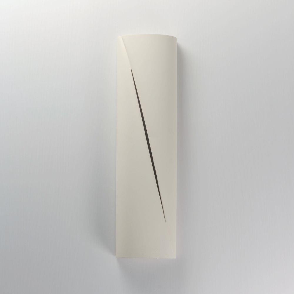 Softly rounding forms are constructed of outdoor-rated concrete molds. Finished in Greystone or Chalky White, these sconces are both playful and sophisticated. A diagonal reveal along the fixture's body emits light while also casting light above and below the fixture.