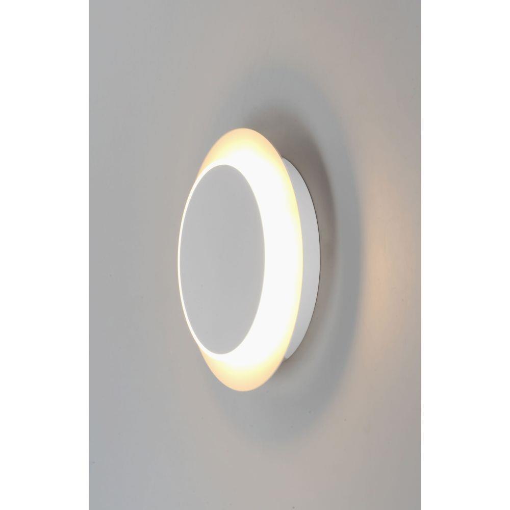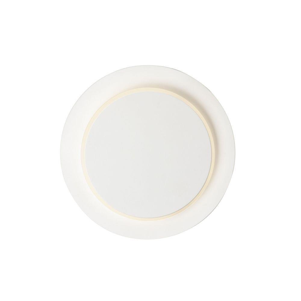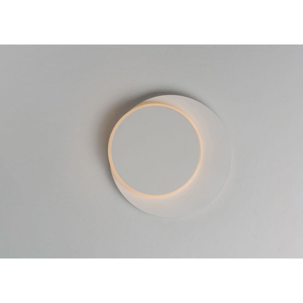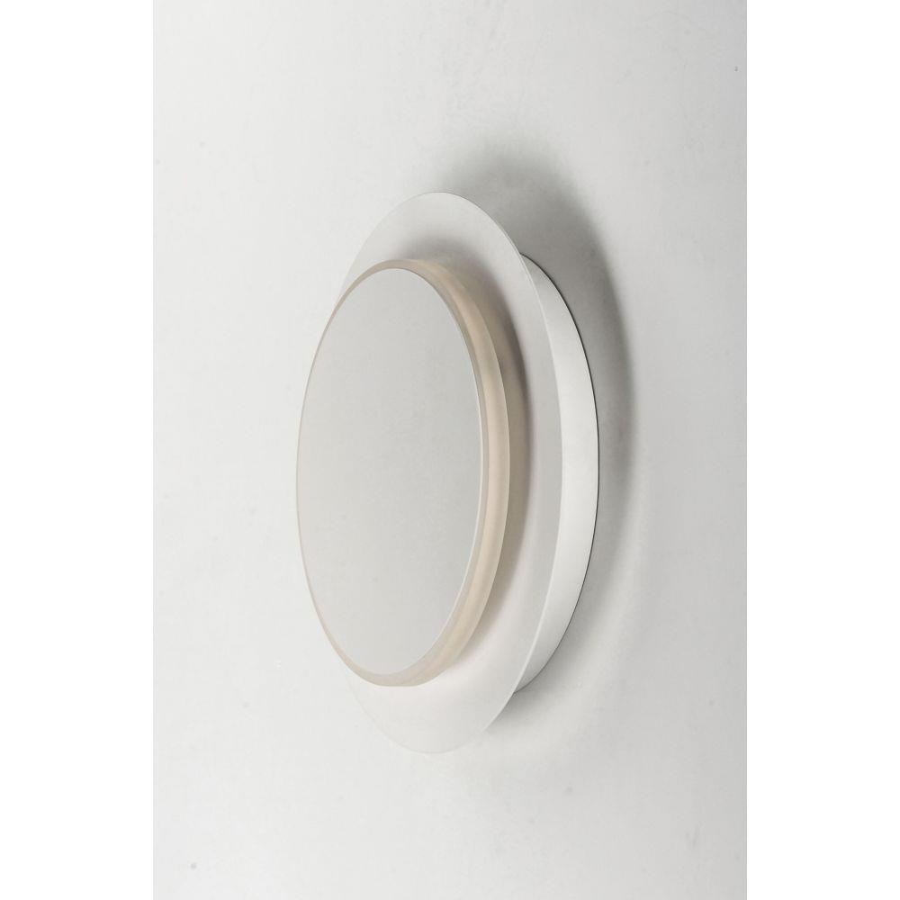 The exterior section of this fixture is lit on the edge and rotates from the top creating a halo effect on the surface behind. Available in either a wall or ceiling fixture is created in two sections finished in Matte White.