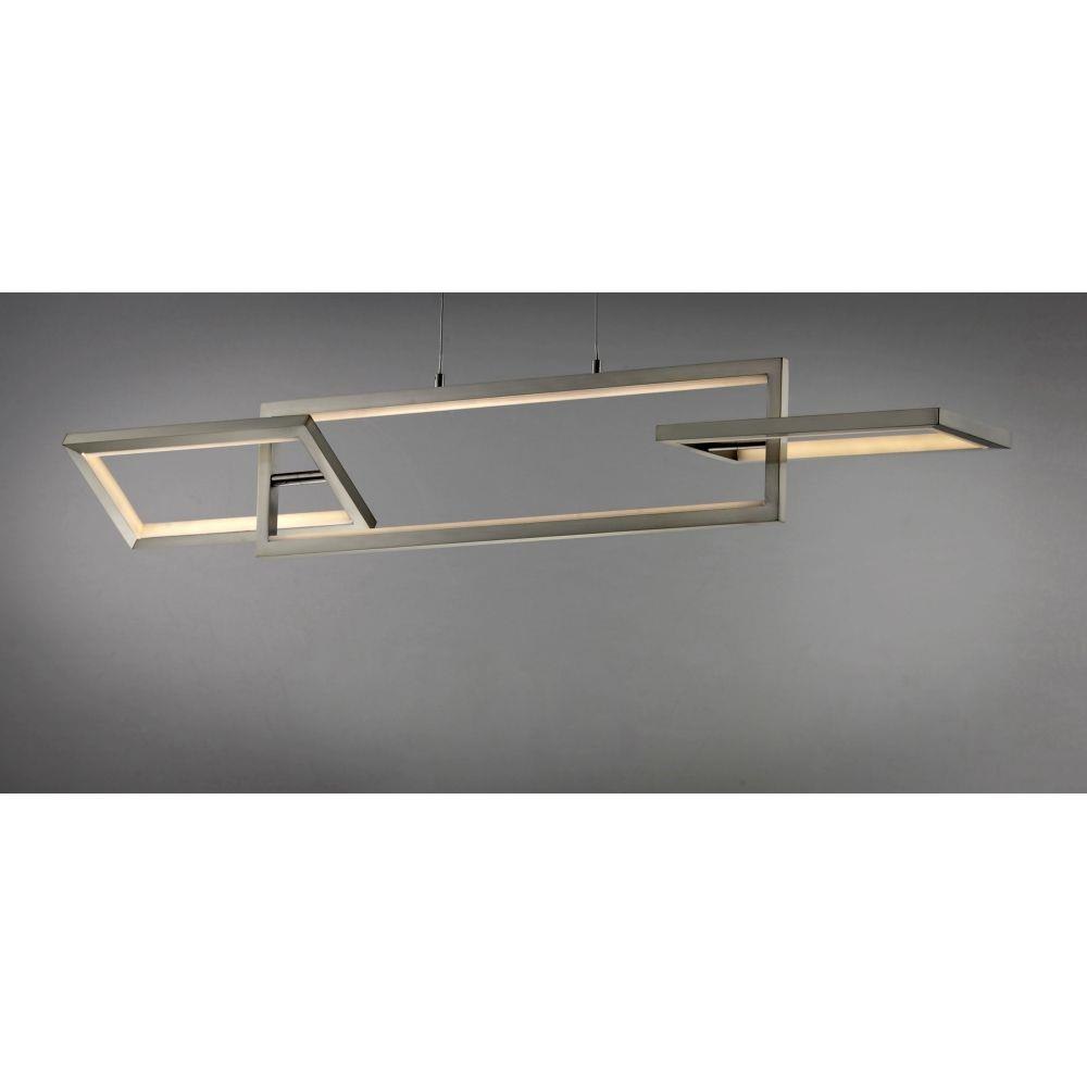 Chain links of Satin Nickel are illuminated internally by encased LED light. The suspending frames are adjustable to create different expansions of the linear pendants and flush mounts. A coordinating wall sconce completes this streamlined contemporary collection.