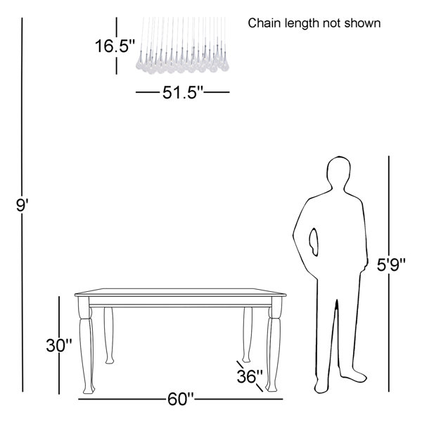 Drawing inspiration from modern art installations, this modern cluster pendant features 24 teardrop lights hanging in a close cluster. Each light is mounted into the same metal backplate with a polished chrome finish, and features an adjustable hanging cord, so you can set each light at a different height. Clear glass teardrop shades hang at the end of each cord, creating a dynamic rainfall effect. And with 24 included 15W LED bulbs, this piece is ready to hang as soon as it arrives. This cluster pendant is compatible with sloped ceilings and dimmer switches, and measures 51.5'' wide.