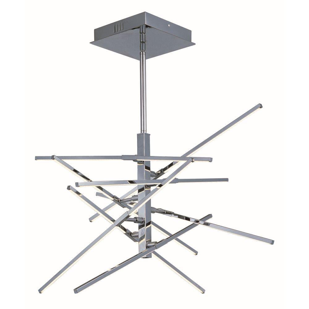 Micro channels of Polished Chrome aluminum are faced with an acrylic diffuser and are arranged in a crisscross formation to create an interesting sculpture of light. Although pre-set out of the box, each are adjustable to create your own unique design.
