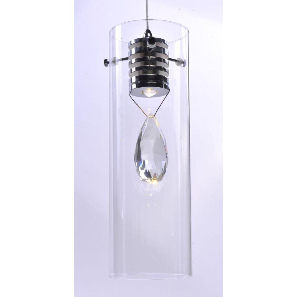 Elegant beveled crystal, almond pentalogue suspended inside clear glass cylinders, are brought to life by high powered 3W COB LEDs. These LEDs are cleverly concealed inside heat sink castings that are finished in Polished Chrome.