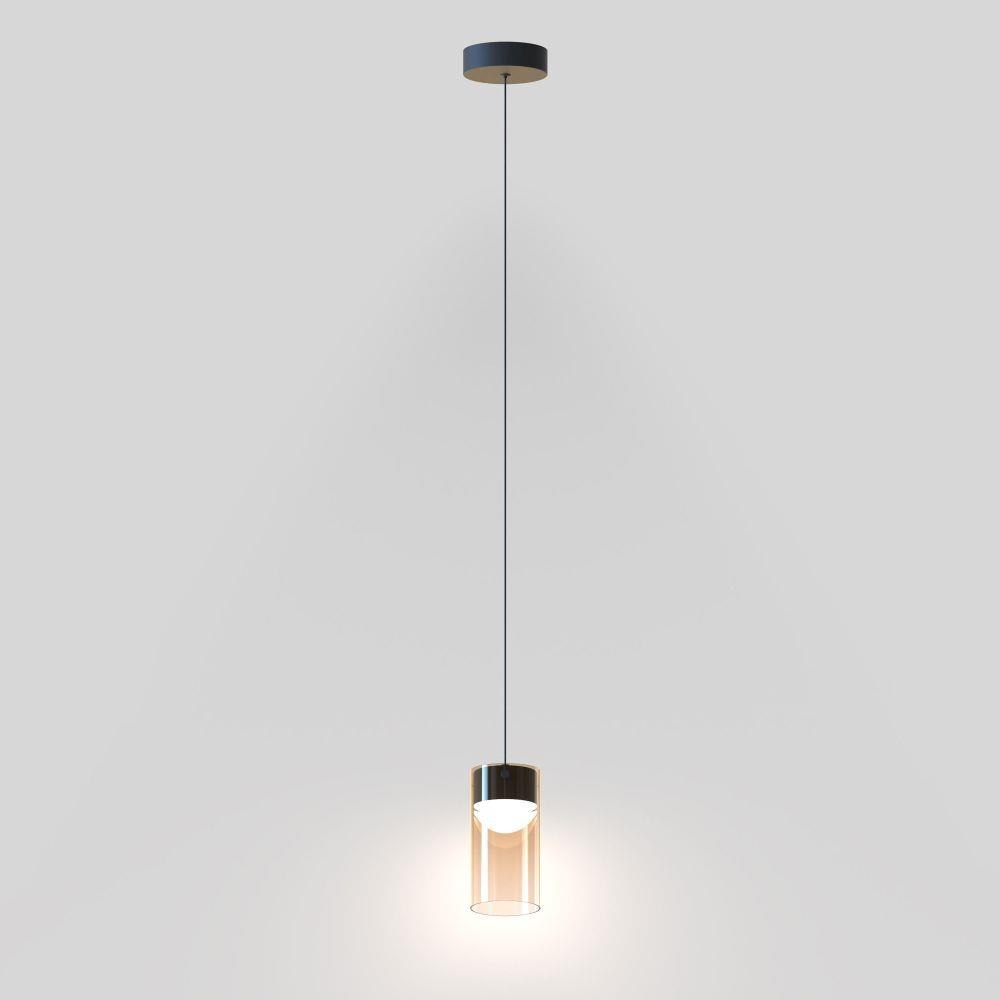 Minimalist in form and futuristic in styling, a gradient color effect applied to cylindrical glass shades provides a dynamic lighting effect. A Polished Gunmetal LED housing supports the glass adds a mirror like effect to the highly reflective glass. The resulting effect is a replication of the LED light along the length of the glass. Available in a mirrored Gradient Smoke or Gradient Amber glass, the finishes remarkably coordinate with many interior color palettes.