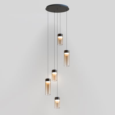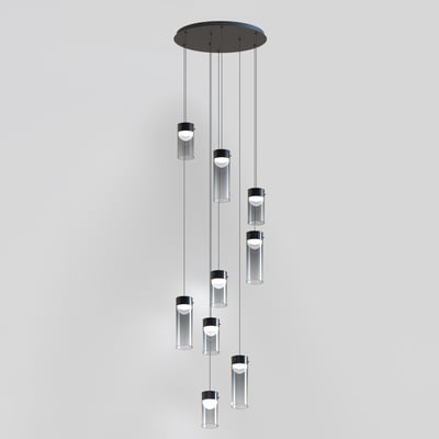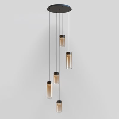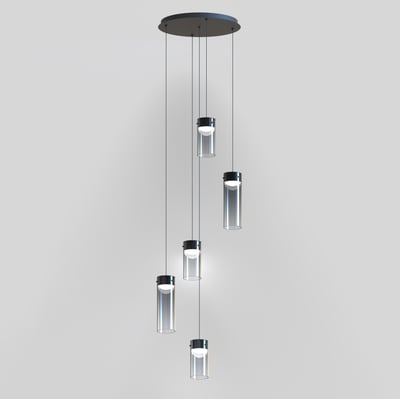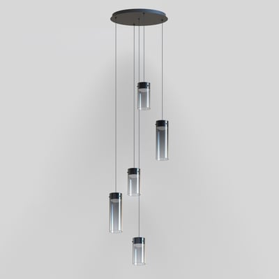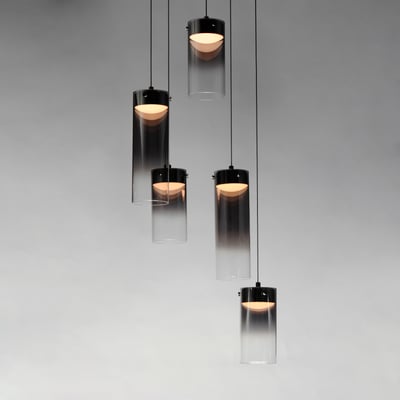 The Highball Multi Light Pendant enhances modern interiors with its minimalist design and futuristic appeal. Featuring a gradient color effect on cylindrical glass shades, this pendant delivers a captivating lighting experience. Supported by a polished gunmetal LED housing, it reflects light beautifully, creating a dynamic ambiance.