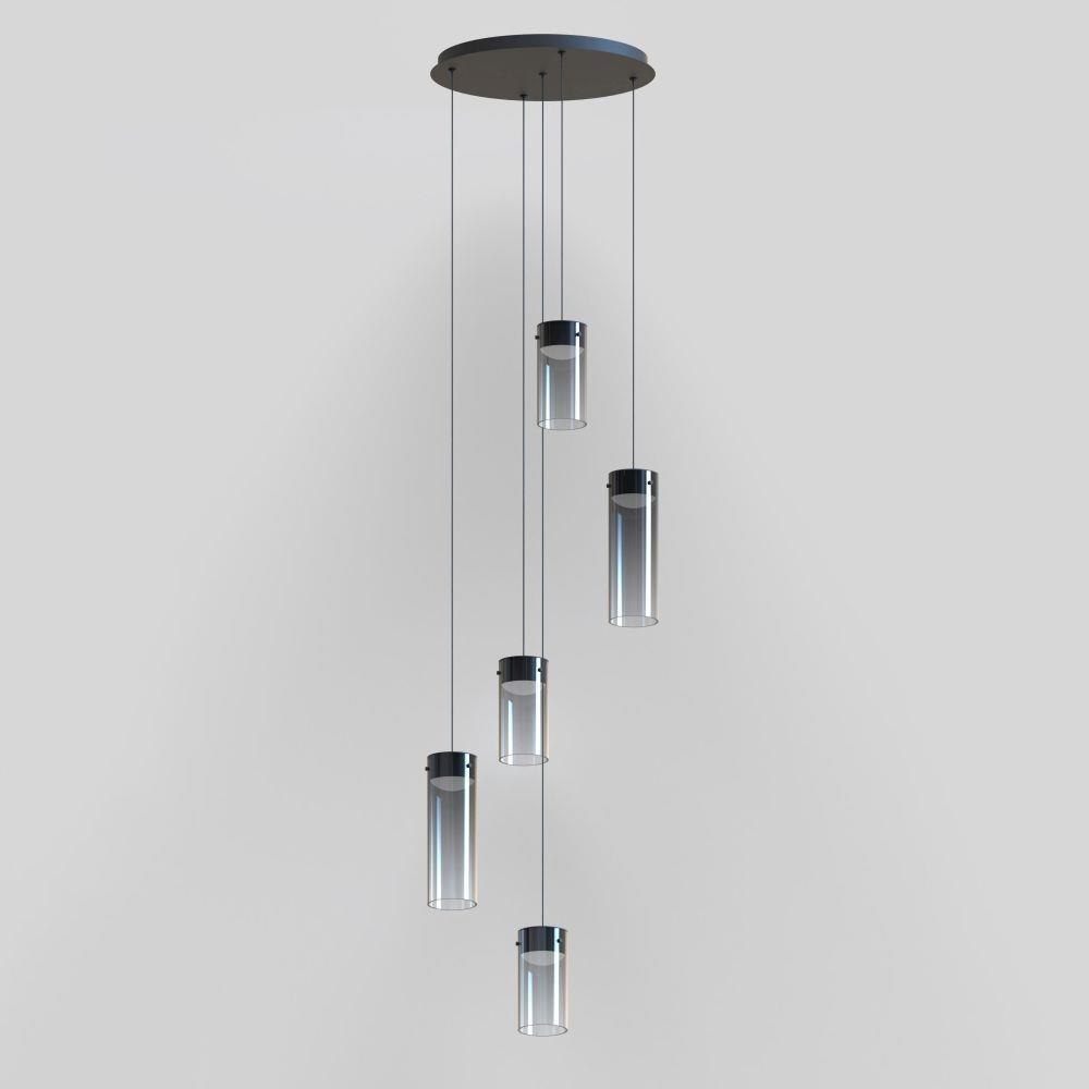 Minimalist in form and futuristic in styling, a gradient color effect applied to cylindrical glass shades provides a dynamic lighting effect. A Polished Gunmetal LED housing supports the glass adds a mirror like effect to the highly reflective glass. The resulting effect is a replication of the LED light along the length of the glass. Available in a mirrored Gradient Smoke or Gradient Amber glass, the finishes remarkably coordinate with many interior color palettes.