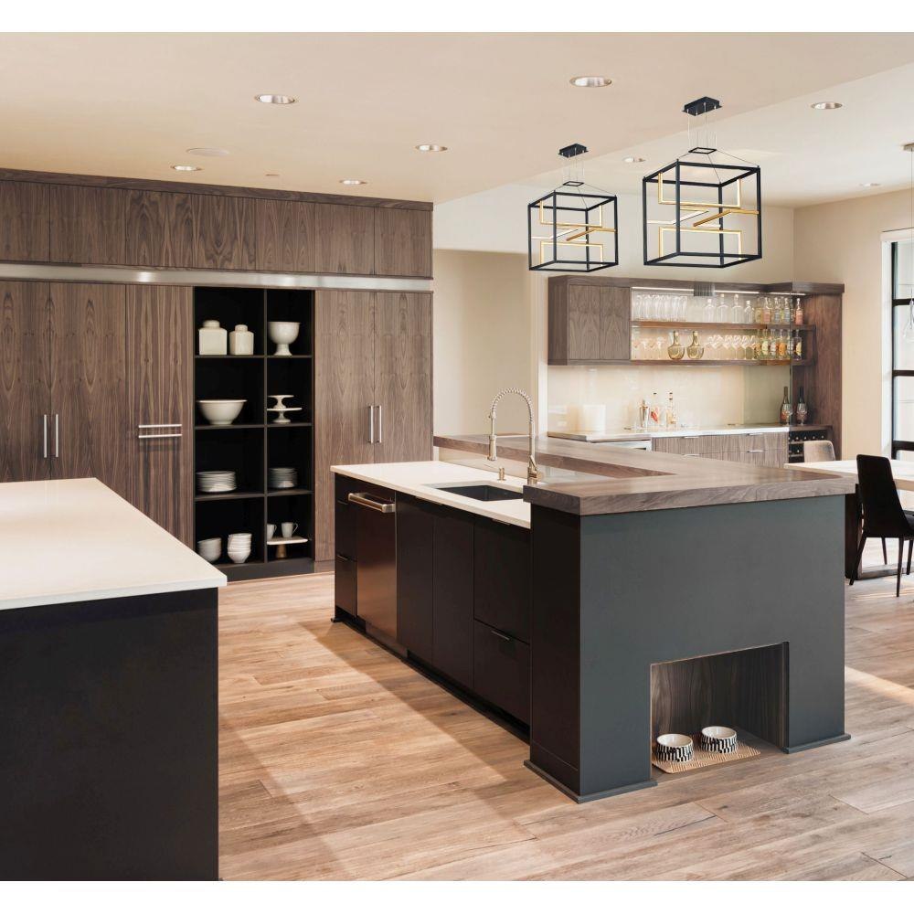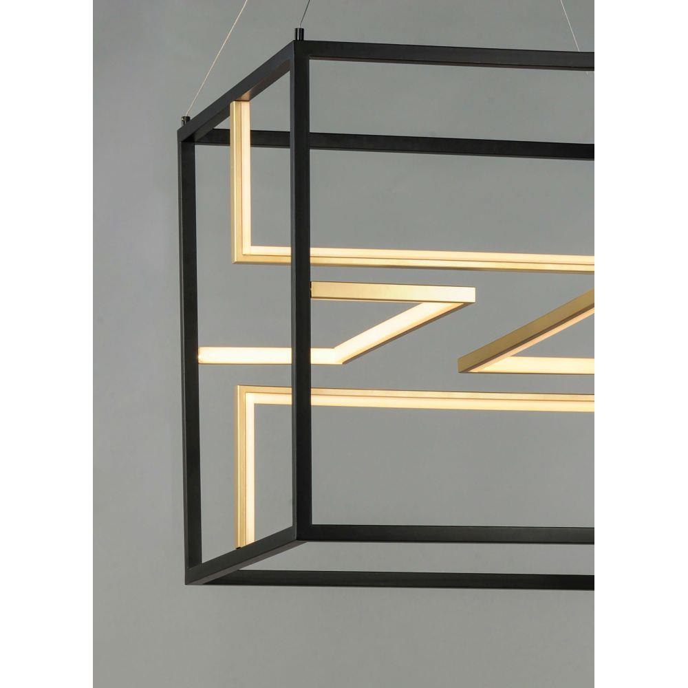 Blocks of Black encase a series of contrasting U shape Gold structures that house the LED. Positioned in various directions, the entire room is illuminated by this unique architectural design.
