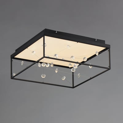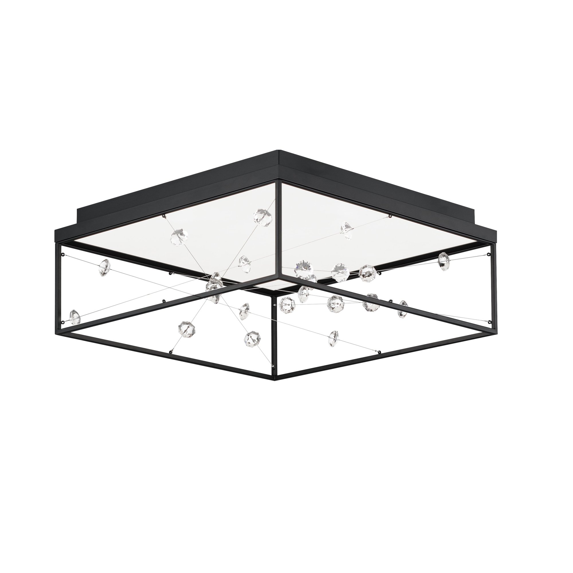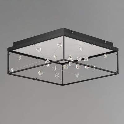 The Entanglement Flush Mount redefines modern lighting with its captivating design. A network of wire and crystal is elegantly suspended within a sleek box frame, creating a stunning visual effect that enhances any room.