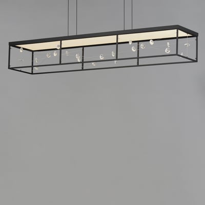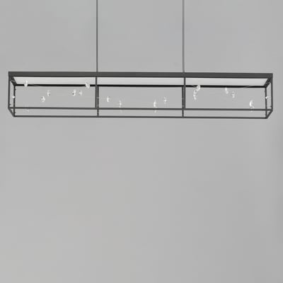The Entanglement Linear Suspension light offers a stunning blend of modern design and functionality. This captivating fixture features a network of wire and crystal elegantly suspended within a sleek frame, creating an eye-catching focal point for any room.
