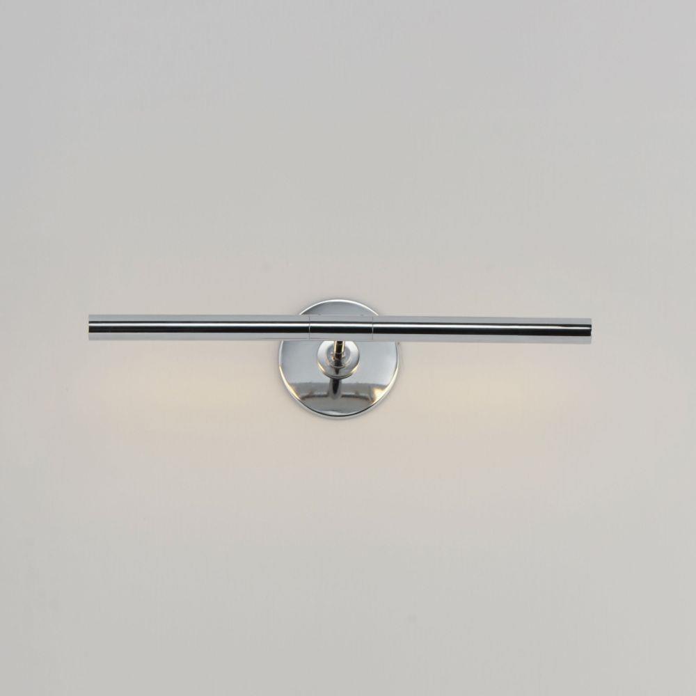 A bold and timeless sconce, Dorian features a sleek, square block support with two cylinder LED tubes that extend horizontally. These tubes rotate individually to position the LED light. The collection features linear and vertical pendant configurations with slender profiles. The elongated vertical pendants are perfect to light lofty spaces. Individual segments rotate to direct the light along areas such as stairwells and can highlight artwork and collectible displayed at taller heights. The wall-mounted sconces offer similar features with additional streamlined back plate designs that mounts to either a single gang junction box or common 3-0 or 4-0 boxes with cover plate included. The sconces work well as portrait lighting, integrated into shelving, or above bath vanities. Two options for extension including one that extends less than four inches for ADA compliance. Available in Matte Black, Polished Chrome, and plated Gold, this collection is a subtle, handsome design with timeless appeal.