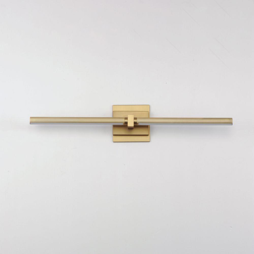 A bold and timeless sconce, Dorian features a sleek, square block support with two cylinder LED tubes horizontally extended. These tubes rotate individually to allow the LED light unique positioning. The collection features linear and vertical pendant configurations with slender profiles that offer enhanced visibility. The elongated vertical pendants are perfect to light lofty spaces. Their rotatable extensions direct the light along areas such as stairwells and can highlight artwork and collectible displays at taller heights. The wall-mounted sconces offer similar features with additional streamlined back plate designs that mounts to either a single gang junction box or common 3-0 or 4-0 boxes with cover plate included. These sconces suit light portraits, shelves, or work as bath vanities. They extend less than four inches in compliance with ADA standards. Available in Matte Black, Polished Chrome, and plated Gold, this collection is a subtle, handsome design with timeless appeal.