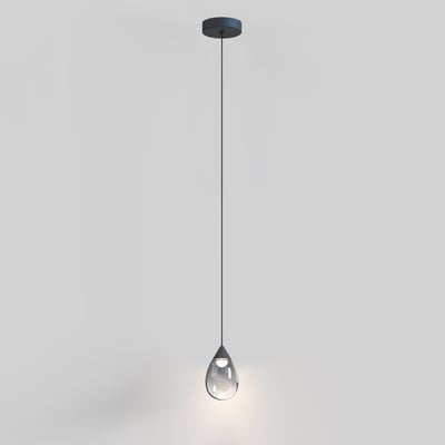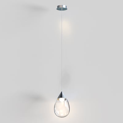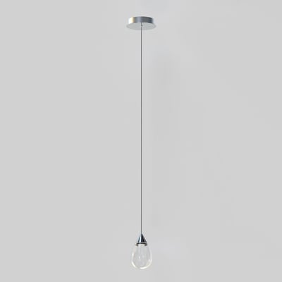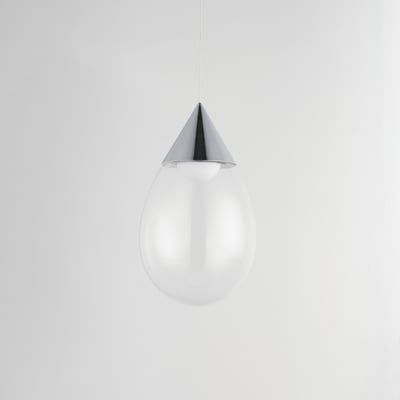 The Dewdrop Pendant elevates modern lighting with its elegant teardrop design, showcasing blown glass that encases a recessed LED light source. Suspended from slim cords, this pendant adds a striking visual element to any space while providing functional illumination.