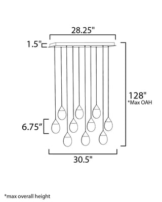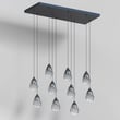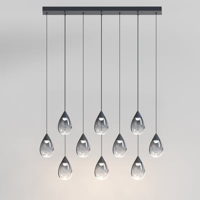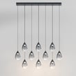 The Dewdrop Linear Suspension by ET2 elevates any space with its elegant design and functional lighting. Suspended from slim cords, the teardrop-shaped glass encases a recessed LED light source, providing a striking visual while casting a warm glow.