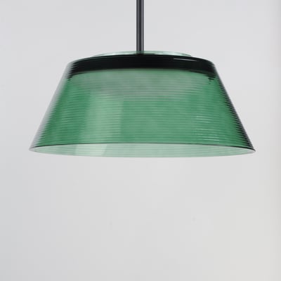 The Jensen LED Pendant showcases a sleek, tapered design with a ribbed glass shade that adds a modern touch to any space. This versatile lighting solution enhances both aesthetics and functionality, making it an excellent choice for various settings.